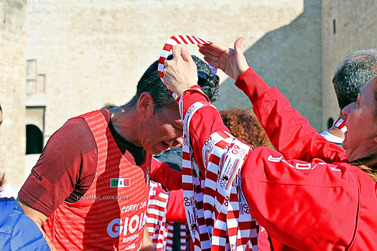 그리고 또 하나.. 결승점을 통과한 선수들의 목에 걸어주는 시상식 장면이다. 시상식은 따로 마련되어있지 않고 결승점을 통과한 선수들이 공원에 마련된 쉼터로 이동하는 가운데 자원봉사 아주머니들이 메달을 목에 걸어주는 의식(?)이 전부였다. 메달을 목에 걸어주는 아주머니들은 메달을 걸어주면서 "Complimenti!!_축하합니다!!"라는 말과 함께 시종 웃음을 잃지 않았다.