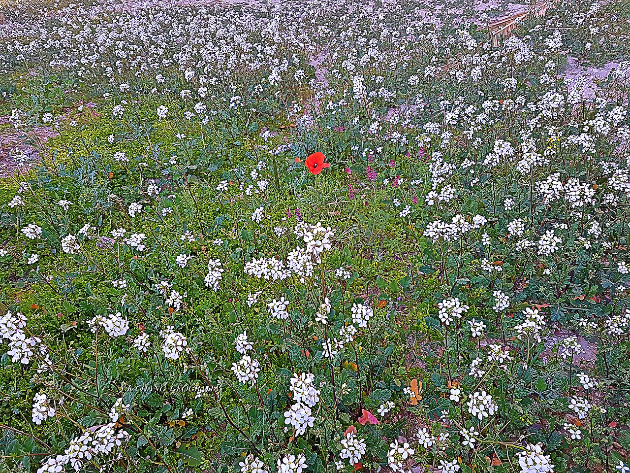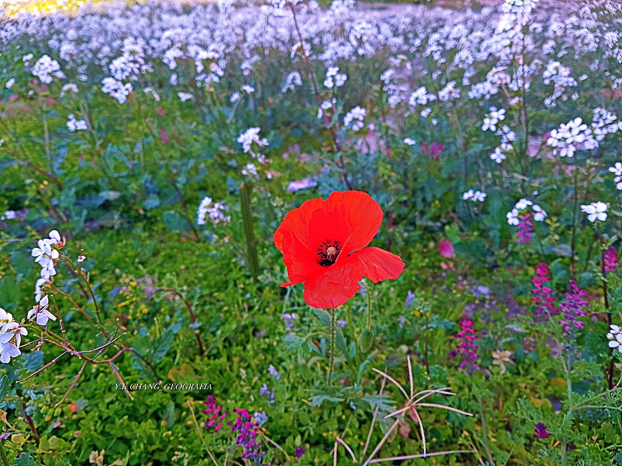 말 그대로 홍일점.. 새빨간 양귀비꽃이 피어있는 곳은 내가 살고 있는 이탈리아 남부 뿔리아 주 바를레타의 작은 화단에 홀로 핀 아름다운 꽃이다. 이 화단은 이 도시에서 가장 큰 대형마트가 있는 곳으로부터 불과 100미터도 떨어지지 않은 곳이다. 아침운동을 마치고 나면 주로 들르는 곳이 마트인데 그만한 이유가 있다.