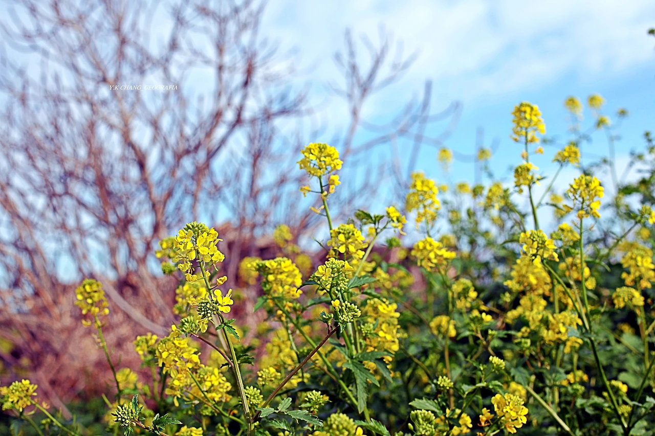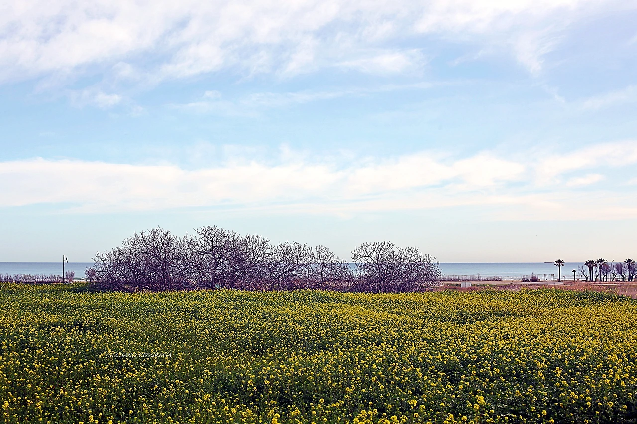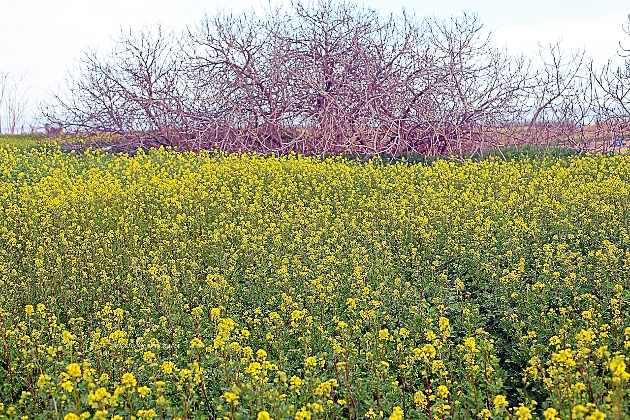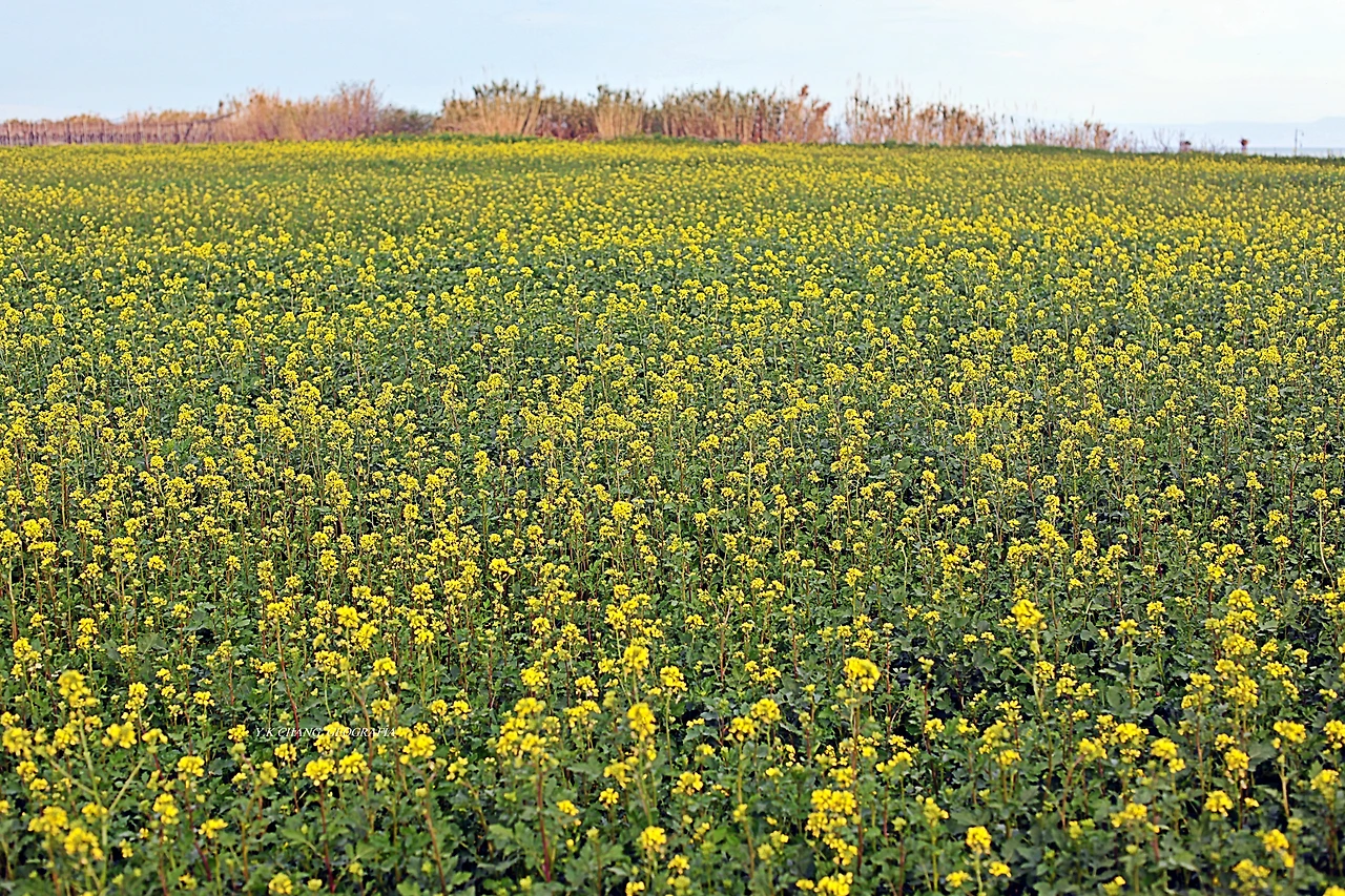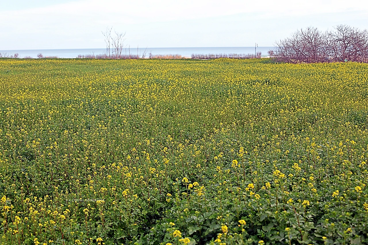 우리는 조금 전, 저 멀리 바닷가로부터 밭이랑을 따라 작은 언덕까지 진출했다. 그곳에 우리에게 친근한 유채꽃이 널따랗게 피어있을 줄 꿈에도 몰랐다. 이 같은 일은 아내의 오래된 호기심 때문이자 우리의 여행 본능이 함께 작용했다. 미시세계가 사람을 공포에 몰아넣는가 하면 거시 세계는 봄의 요정을 쏟아부어 괜히 사람의 마음을 들뜨게 하는 것이다. 이런 때 보리밭이라도 만났다면 횡재한 것이나 다름없겠지..