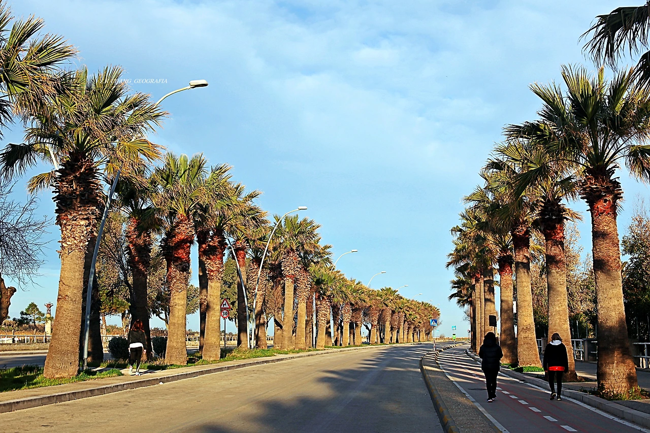 최근 한국에서 이탈리아로 입국한 아내와 나는 매일 아침 바닷가로 산책을 나간다. 집에서 바닷가까지 걸어서 가면 10분이면 족한 지근거리에 아드리아해가 펼쳐져있다. 위 자료사진은 구도시를 벗어나는 즉시 눈 앞에 펼쳐지는 바닷가 풍경이다. 아침햇살을 받은 종려나무 가롯수길이 붉게 물든 너머로 전설의 바다 아드리아해가 보인다. 우리는 저곳에서 하루 일과를 시작하는 것이다.