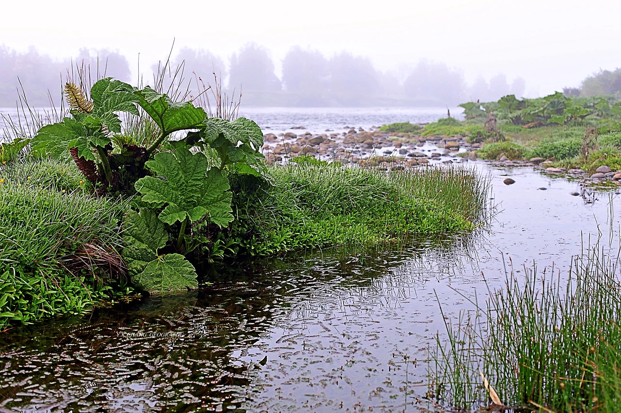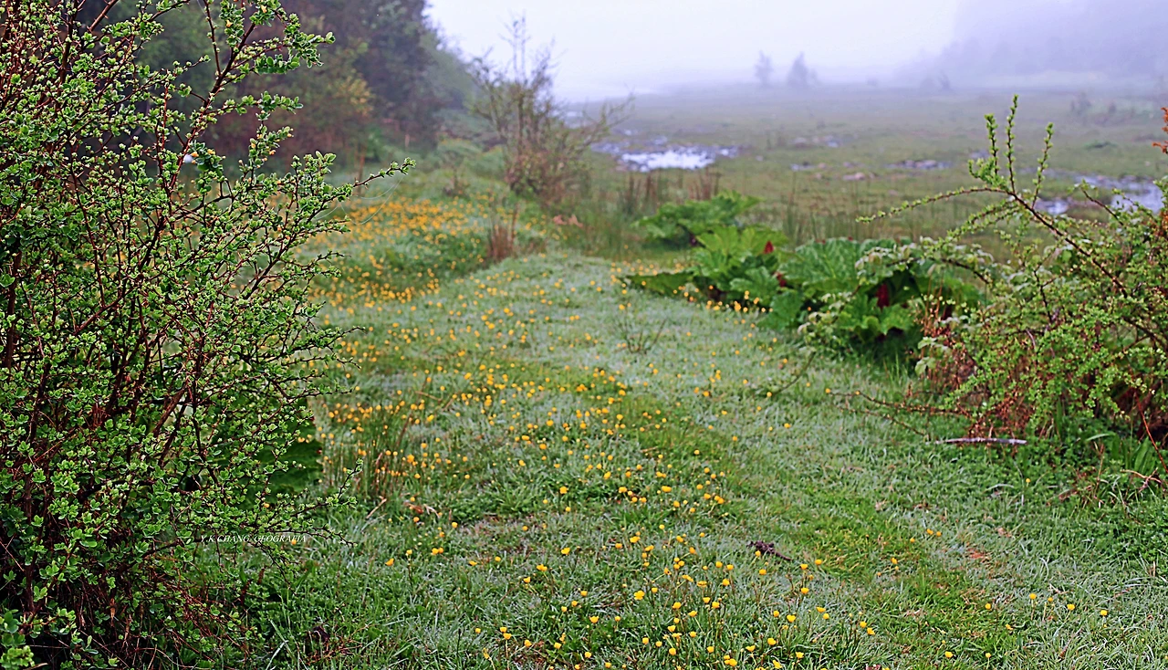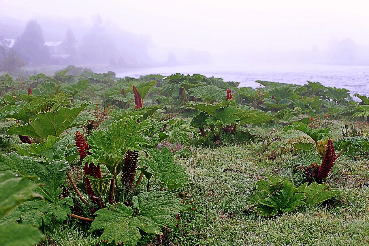 처음 보는 신기한 식물 군네라 띤끄또리아(Gunnera tinctoria(Molina))는 물론 깔라파테와 샛노란 풀꽃들이 비단 안개에 싸여 조화를 이룬 곳. 영롱하게 반짝이던 아침이슬은 세상을 보다 더 신비롭고 아름답게 만들었다. 만약.. 이 세상에 신이 살고 있다면 신의 거처는 이런 곳이 아니었을까..