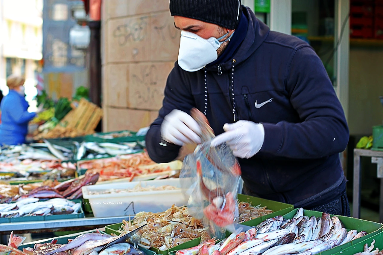 2020년 오전 9시경 이탈리아 뿔리아 주 바를레타 재래시장의 상인들이 마스크를 쓴 채 손님을 맞이하고 있는 모습이 처음으로 목격됐다.
