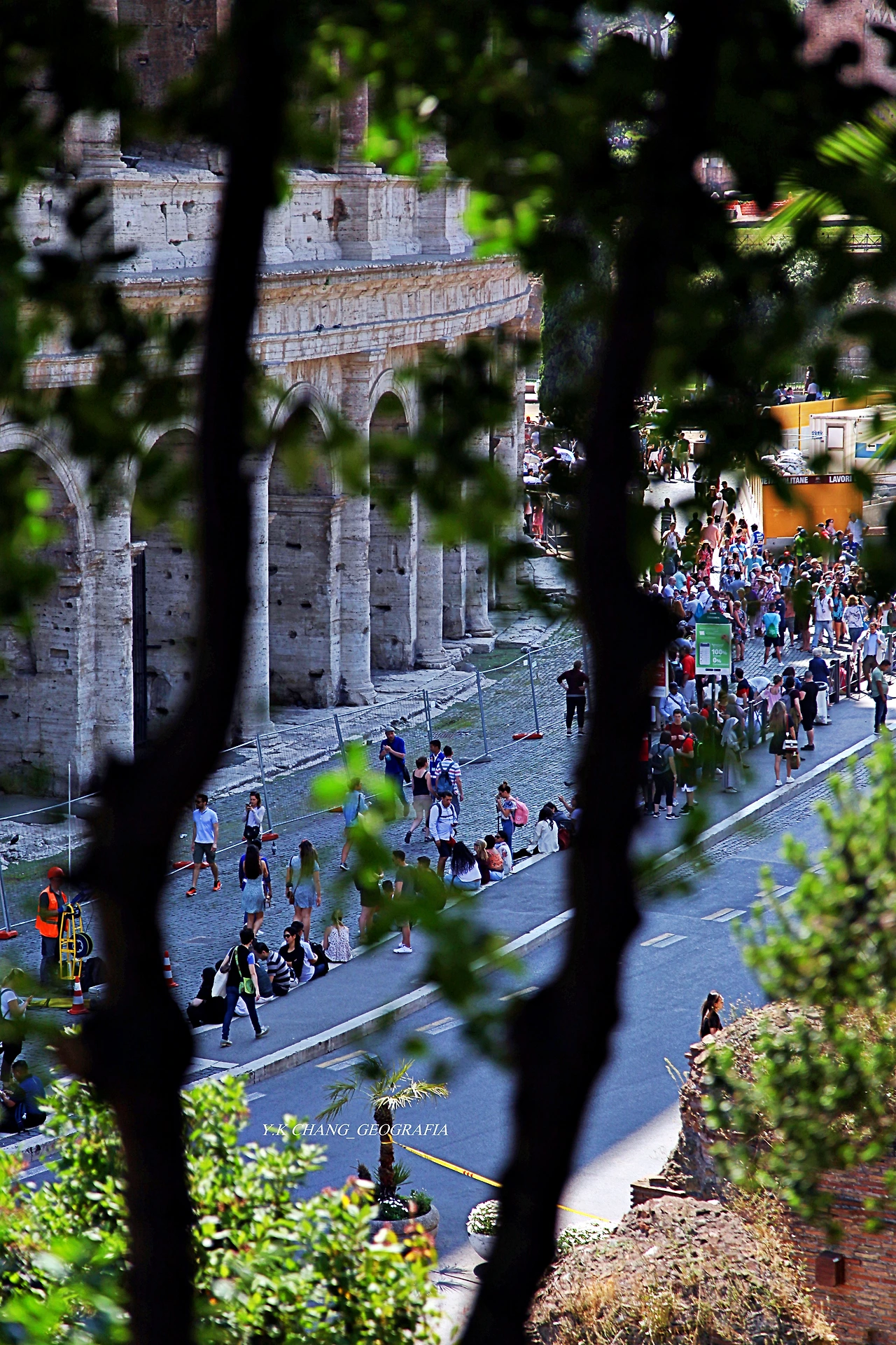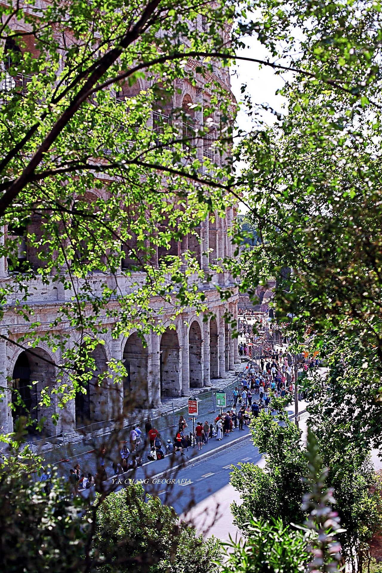 지하철을 빠져나오는 즉시 코 앞에는 엄청난 석조물이 떡 하니 버티고 서있었다. 세기의 건축물 꼴로세오였다. 나는 역을 빠져나오자마자 습관적으로 사람들이 줄지어 선 작은 언덕길을 올라 뷔아 니꼴라 살뷔(Via Nicola Salvi)로 올라갔다. 그곳에 서면 꼴로세오가 잘 조망되는 곳이었다.
