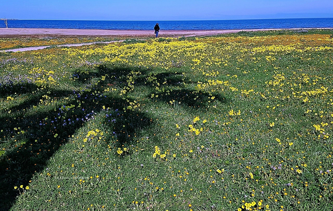 잠잠한 바다와 샛노란 풀꽃들이 어우러진 바닷가 풍경 가운데 한 여자 사람은 아내 모습이다. 아내는 무리함을 무릅쓰고 한국의 특산물을 3개의 케리어에 나누어 싣고 로마의 피우미치노 공항에서 7개월 만에 나와 조우했다. 당시의 모습을 갑자기 달라진 바닷가 풍경에 이렇게 썼다.