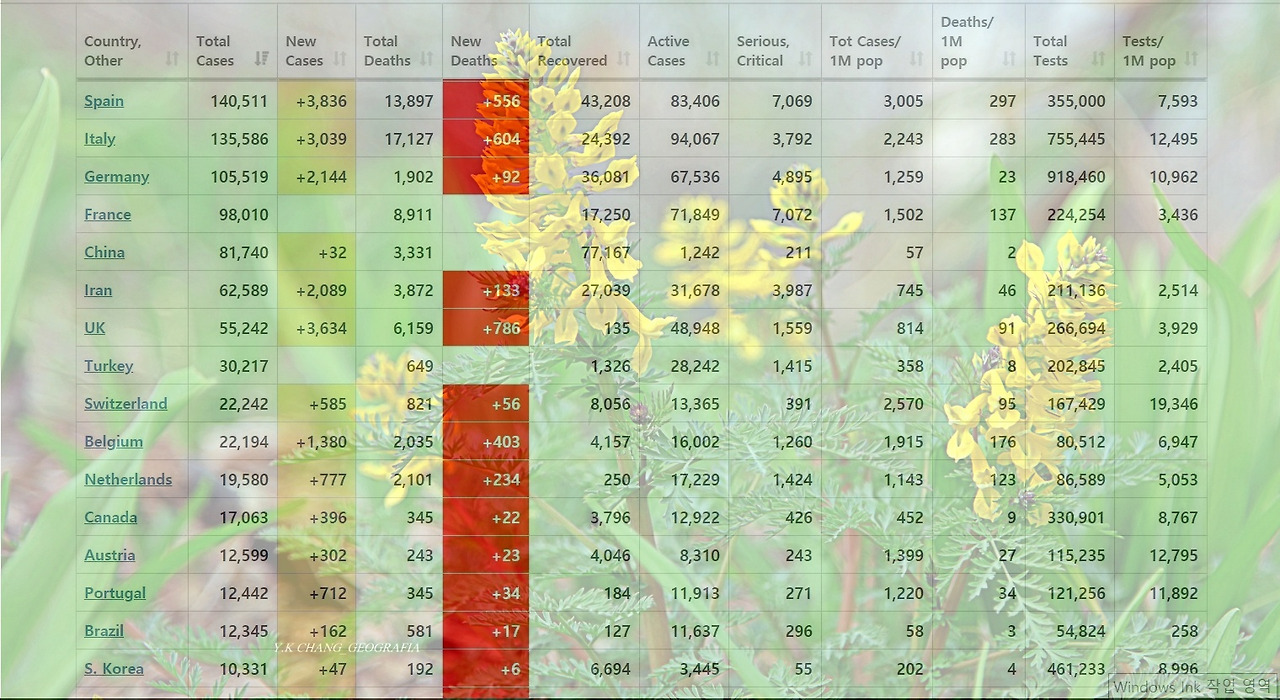 요즘 나의 브런치에 매일 기록하는 건 다름 아닌 꼬뷔드-19의 상황이다. 정확히 말하면 죽음의 기록이자 주검의 기록이다. 매일 죽어가는 사람의 수를 계수하며 언제인가 그 수가 제자리걸음을 할 때까지 기록하기로 마음먹고 있는 것이다. 우리가 서울에서 살 때 연분홍 꽃봉오리를 기다렸던 것처럼, 혹한의 겨울을 조바심으로 나는 것처럼, 우리 삶에 풍요로움이 깃들기를 바라는 것처럼..