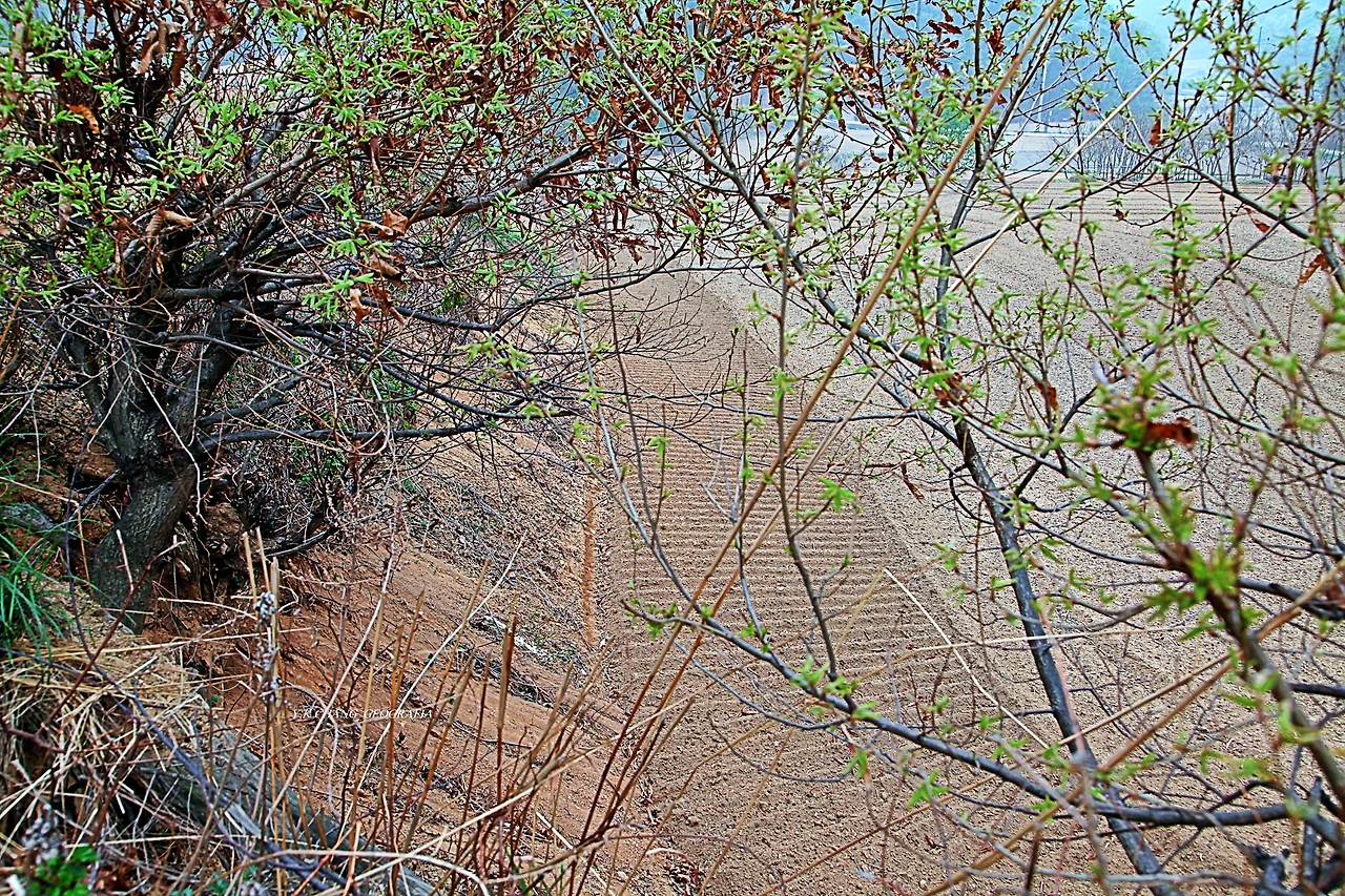 아내가 드로잉을 하기 좋은 장소로 이젤과 도구를 옮긴 다음 나는 동네를 한 바퀴 둘러봤다. 황톳빛 밭들은 머지않아 파릇한 새싹을 내놓을 것이나, 그들보다 먼저 꽃잎을 내놓은 제비꽃과 복사꽃이며 죽단화(황매)가 마을 뒤편 오솔길 옆에 가득 피어있었다. 그런가 하면 밭둑에는 쑥들이 지천에 널려있었다.