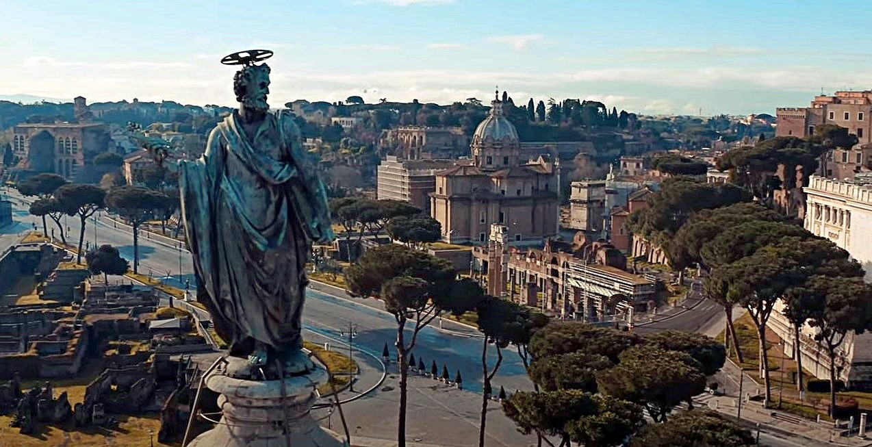 *이하 이미지와 영상은 이탈리아의 꼬뷔드-19(Coronavirus in Italia)와 관련된 것으로 사회적 거리두기를 하고 있는 이탈리아 로마의 풍경이다. 이미지는 영상에서 캡처한 것으로 로마는 침묵의 도시로 변한 모습이다. 한 때 지구별의 중심축이었던 도시를 비루스가 삼킨 것과 별로 다르지 않은 모습이다.