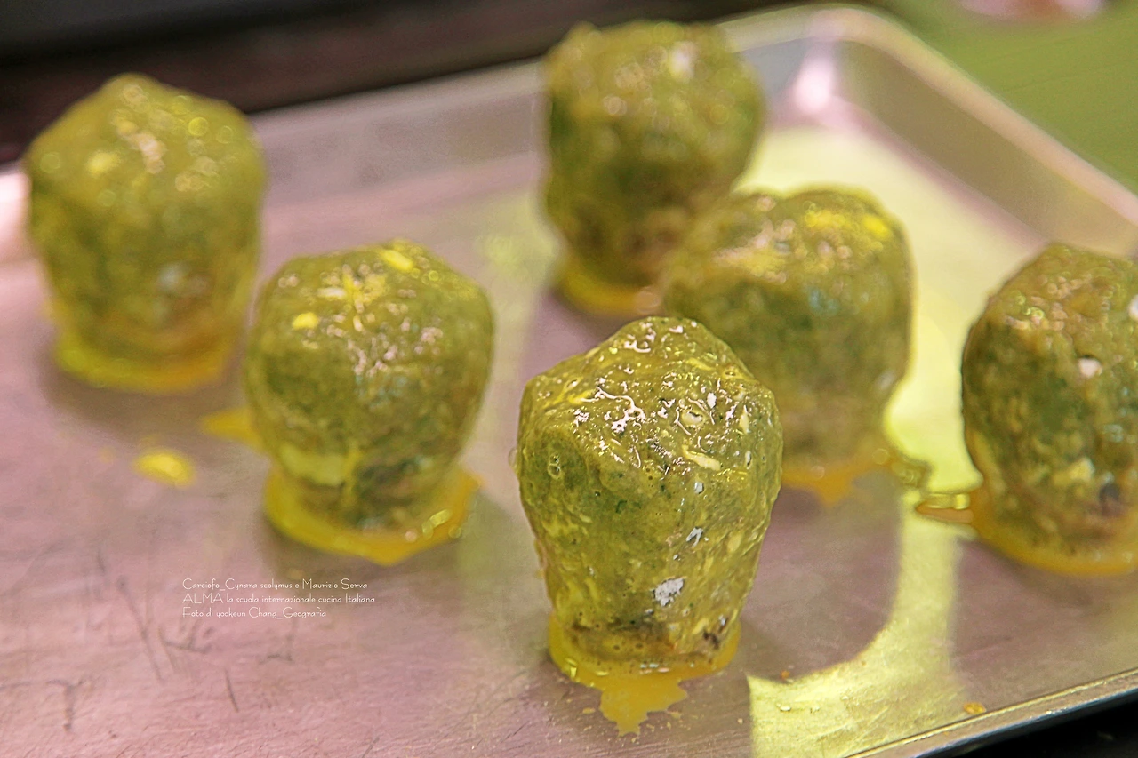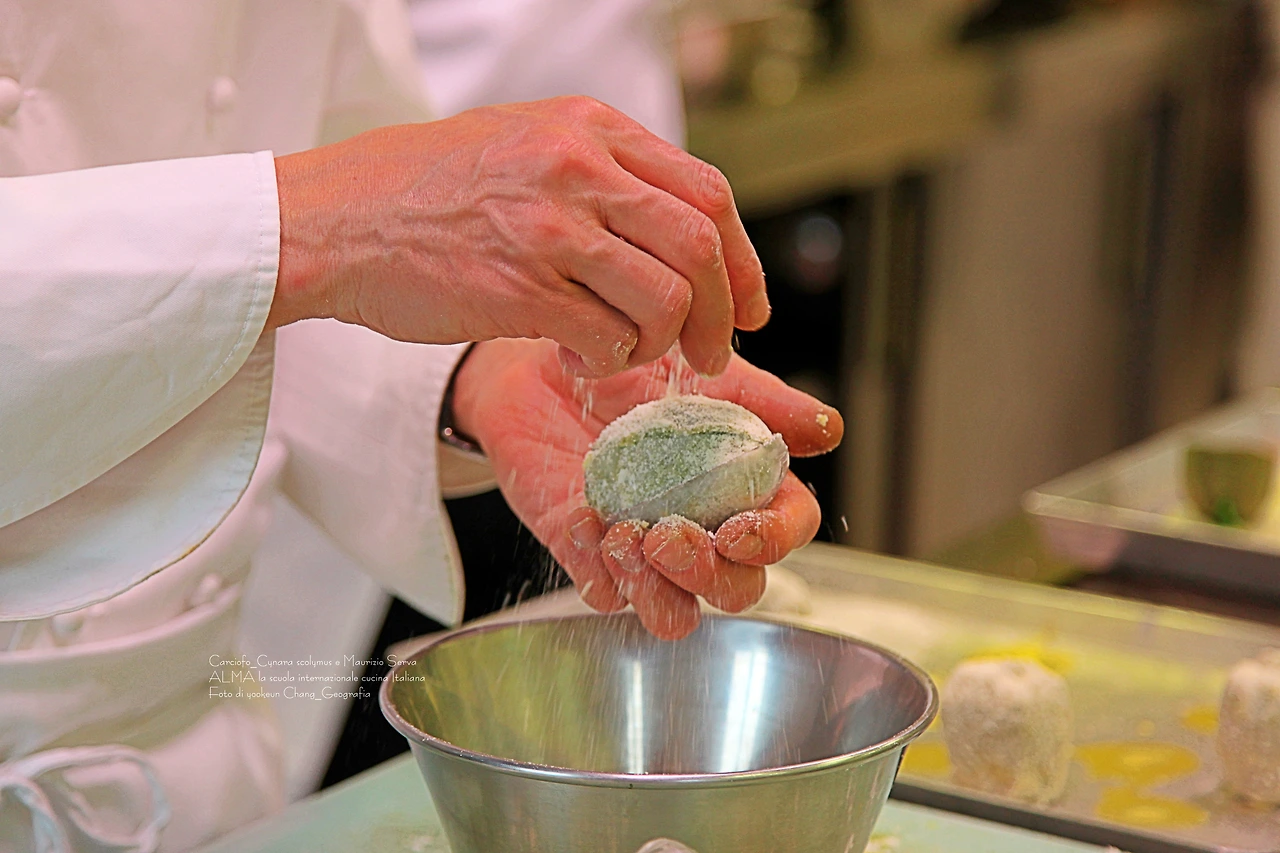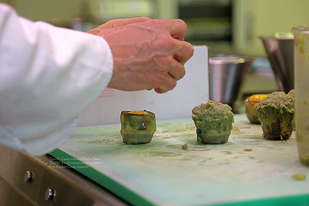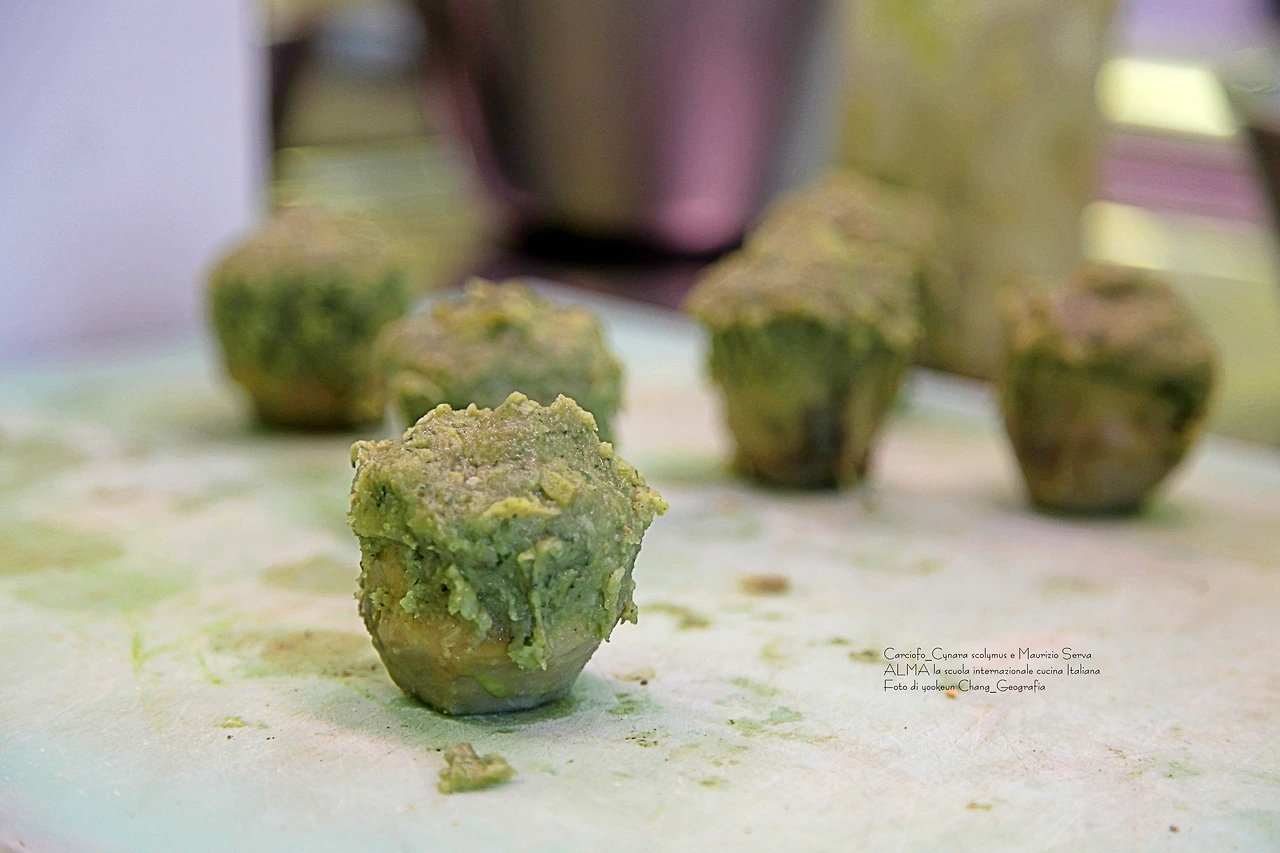 셰프 마우리지오 세르바의 손에서 카르치오피가 점점 변신을 더해 간다.