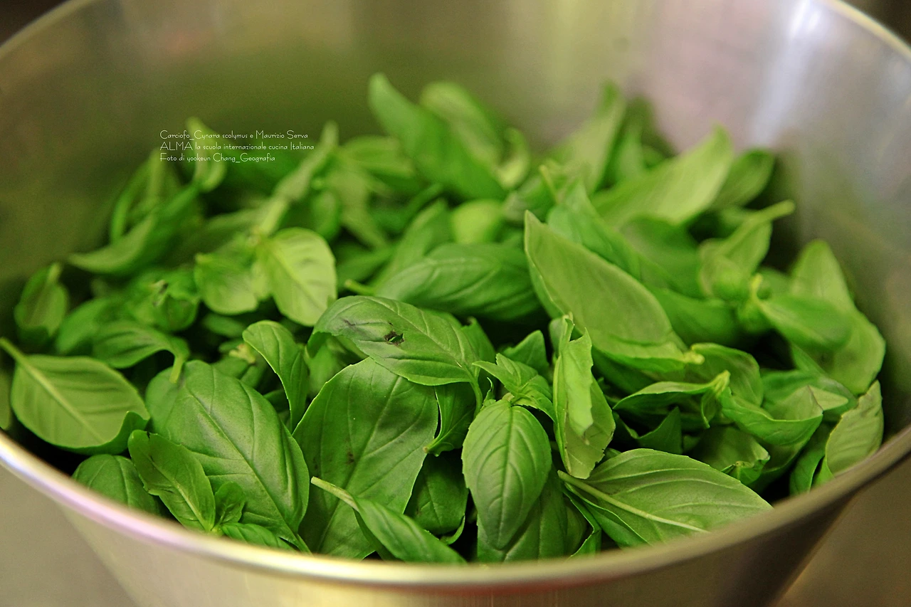 싱싱한 바실리코(Il basilico)가 역할을 기다리고 있다. 곧 살사 베르데(Salsa verde)로 다시 태어날 준비 중
