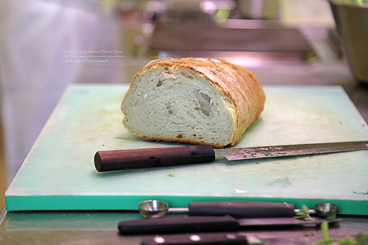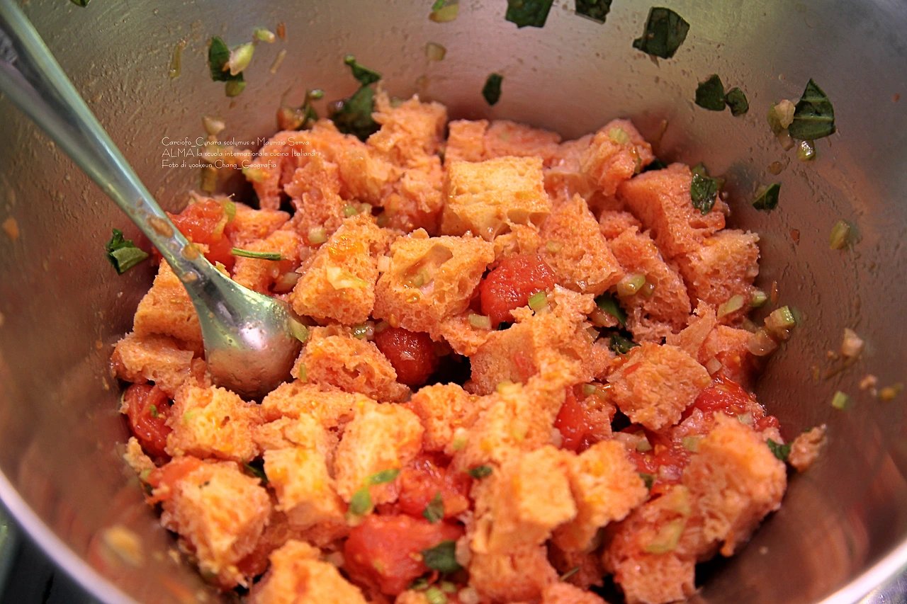 까르치오피 요리에 웬 빵인가 싶었더니 금방 쓰임새가 드러났다. 빵을 잘라 껍질을 발라낸 다음 속살만 사용했다.