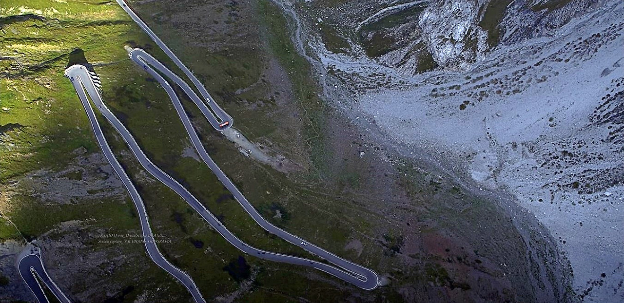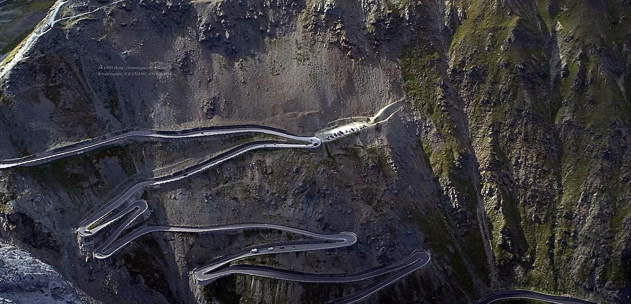 이런 과정을 통해 여행지에 접근하는 건 오래된 습관이다. 그럼에도 불구하고 여행지를 찾아 떠나는 순간부터 머릿속은 하얘지고 가슴은 마구 부풀어 오르는 것. 참 다행이다. 나이가 들면 들수록 감성이 보다 풍부해지는 건 축복받은 일이지 아마.. 오늘은 그 첫 시간으로 이탈리아 북부 알삐(Alpi)에 위치한 빠쏘 델로 스뗄뷔오(Passo dello Stelvio)로 드론을 타고 떠나본다.