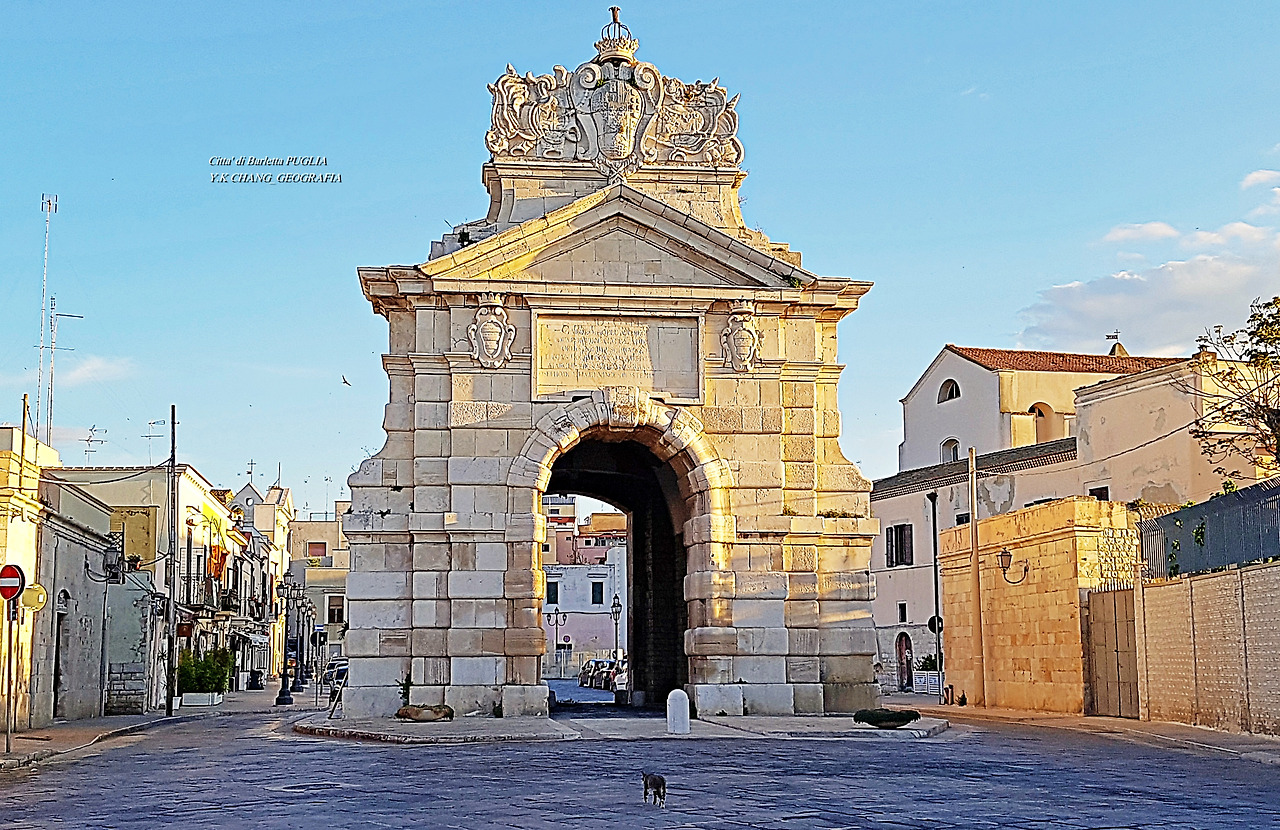 홍합을 날로 먹는 사람들에 관한 이야기를 끼적거리기 전에 위 자료사진 한 장을 설명하고 넘어가야겠다. 길냥이 한 마리가 어슬렁 거리며 걸음을 옮기는 곳의 석조 건축물은 뽀르따 마리나(Porta Marina - fronte sud)란 곳이다. 글쓴이가 살고 있는 바를레타 시내 중심에서부터 대략 10분 정도 떨어진 바닷가에 위치한 곳이다.