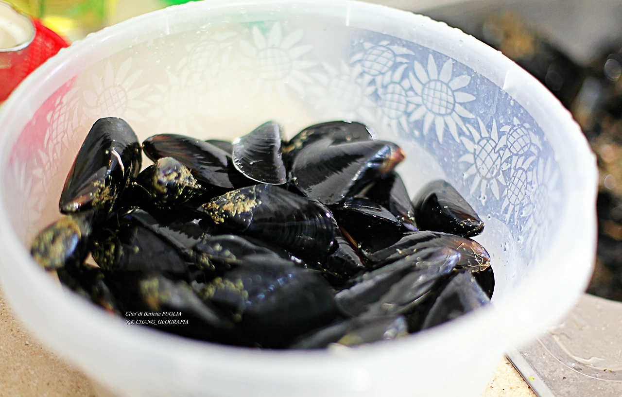 그야말로 홍합은 오만가지 요리로 변신하고 있었다. 홍합 하나에 해산물과 첨가하는 식재료에 따라 맛과 향이 어우러지며 맛의 천국을 만들어 나가는 것. 그중에 내가 가장 선호하는 요리법이 이탈리아 남부 뿔리아 주 바를레타에서 눈에 띈 것이다. 홍합을 날로 먹는 사람들을 만나게 된 것이다. 홍합을 날로 먹으니 홍합회.. 주지하다시피 해산물을 날로 먹으려면 선도가 좋아야 했다.