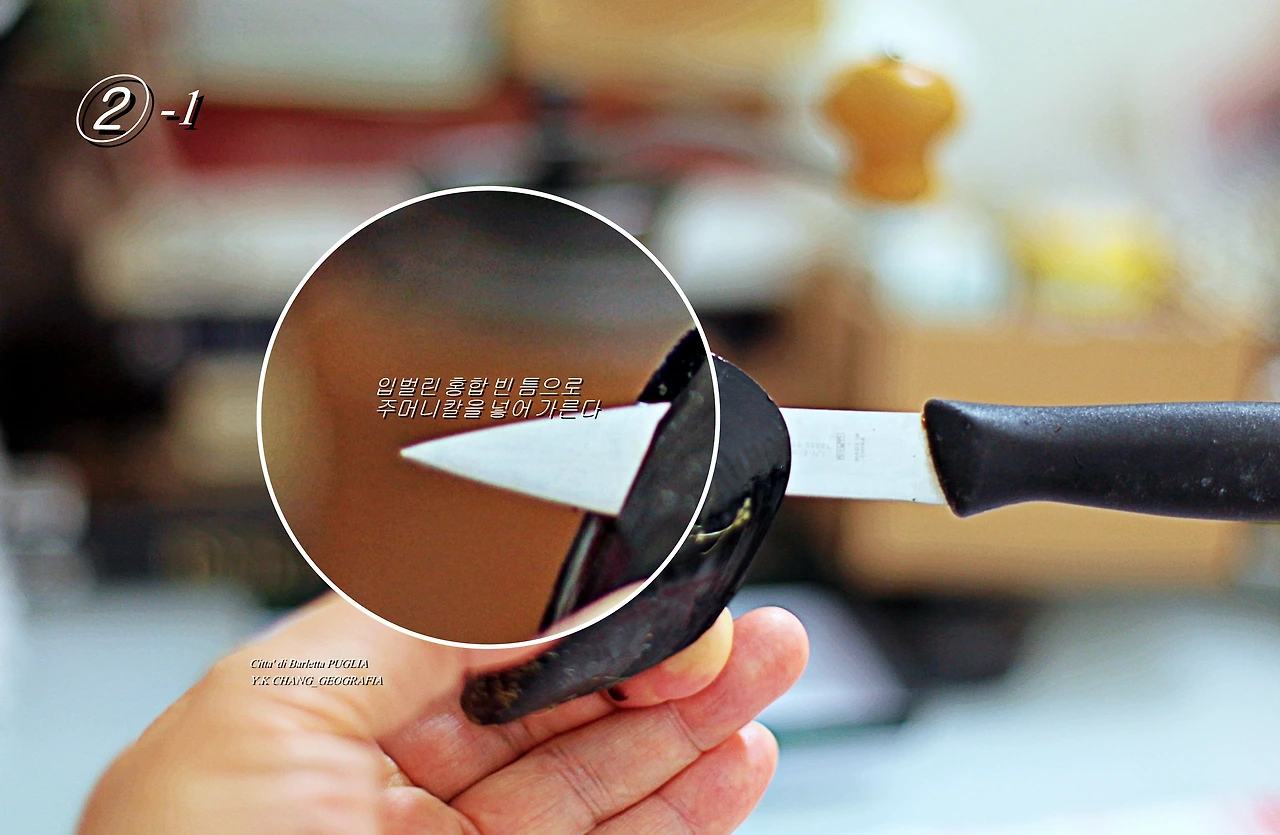 이탈리아에 둥지를 틀기 전까지 한국에서는 생굴이면 몰라도 홍합살을 회로 먹은 기억이 거의 없었다. 아니 해산물 킬러의 기억에 없는 것이다. 그런데 홍합회를 입에 넣어 오물 거리기도 전에 바다향이 입안 가득 퍼지는 게 아닌가.. 나는 아내와 함께 집으로 돌아오는 길 내내 그때 먹었던 홍합회 맛을 기억해 내고 있었다. 그렇다면 홍합회 200배 즐기기 위해서는 홍합을 어떻게 손질해야 할까.. 오늘 포스트에서 가장 중요한 포인트이므로 우리 독자님들께옵서 잘 기억해 두셨다가 실전에 옮겨보시기 바란다.