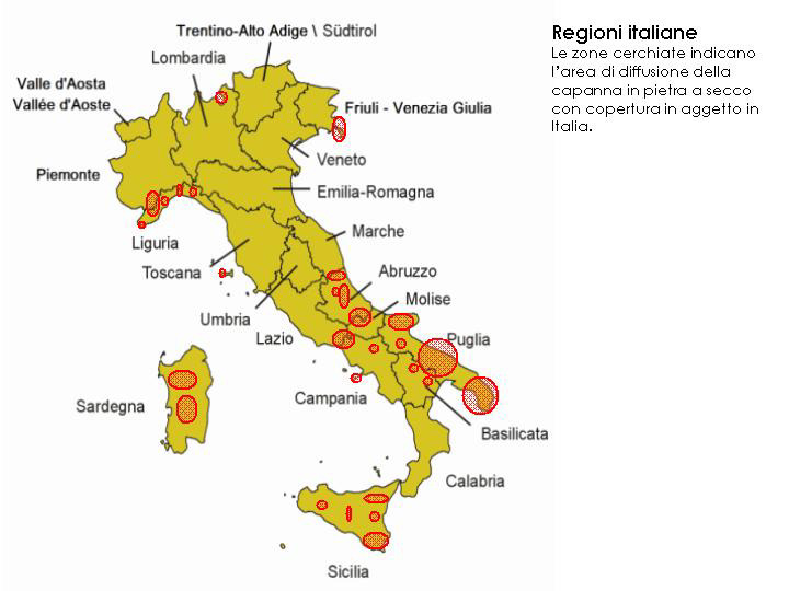 LE CAPANNE IN PIETRA A SECCO CON CUPOLA IN AGGETTO D'ITALIA