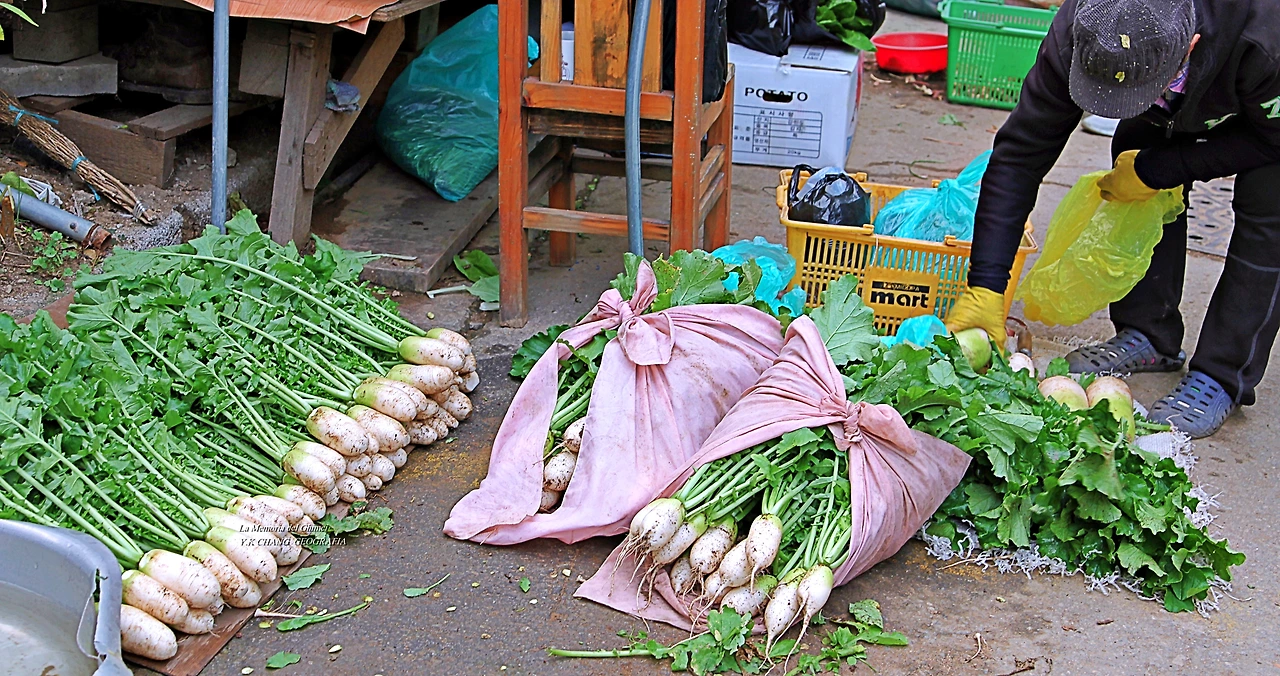 그래서 혹한의 날씨 등 천재지변이 없는 한 등산객들은 하산길에 야채를 사들고 집으로 가는 것이다. 무가 좌판에 널린 풍경은 가을에 만난 것으로 무 이파리와 줄기가 싱싱해 입맛을 당긴다. 나는 싱싱한 무를 보는 순간 유년기를 단박에 떠올리는가 하면 무맛이 절로 생각나는 것이다. 무에서 유를 창조하는 무맛 때문에 뷰파인더가 저절로 무로 향하게 되는 것. 그렇다면 무맛은 대체 어떤 맛일까..