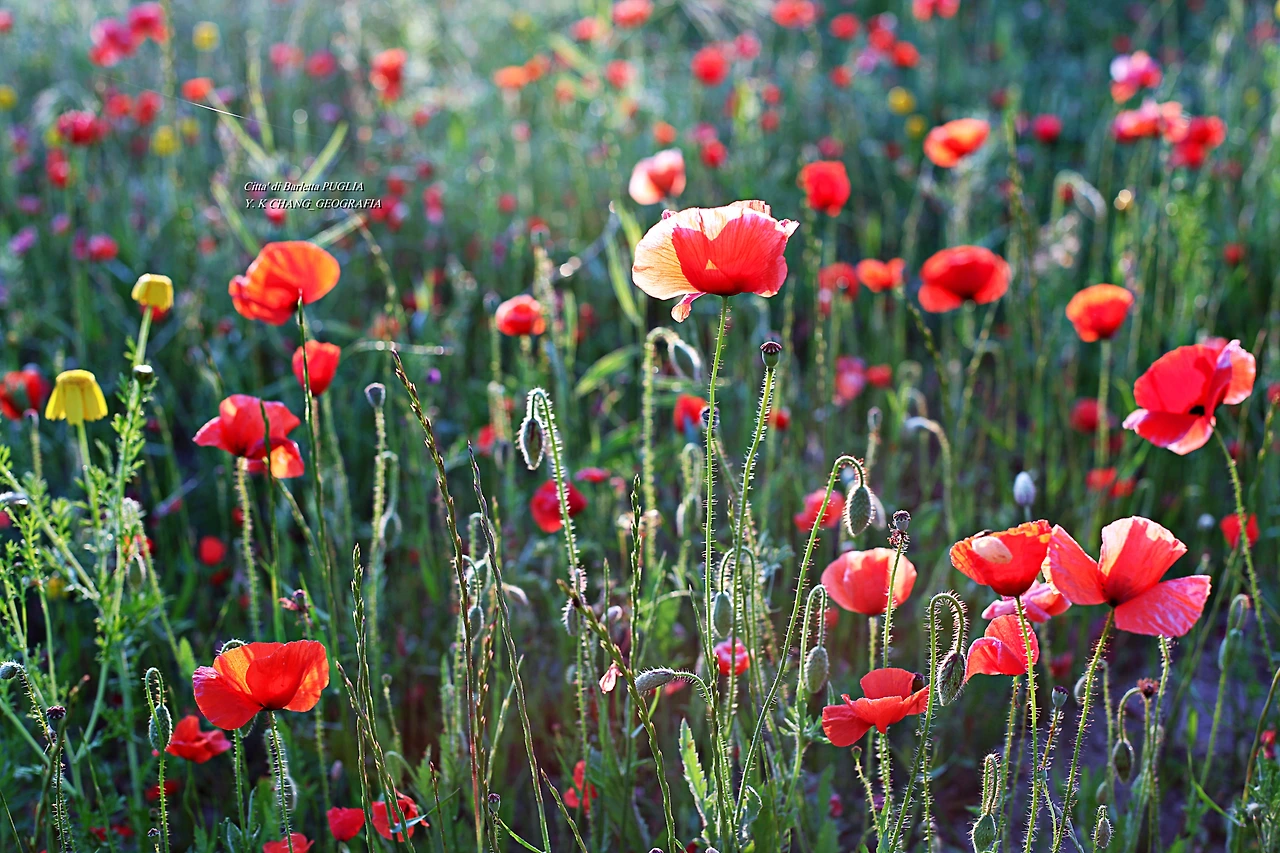 Fiori di papavero che brillano al sole del mattino. Sono uscito di casa con mia moglie prima ancora che fosse giorno. Era... una mattina nella pianura di Barletta. Non possiamo dimenticare quella colazione. Che bello che qualcuno possa perdere. Il paesaggio di quella mattina, quando aprii gli occhi con la persona amata e guardai insieme. Un mese di maggio sta arrivando!