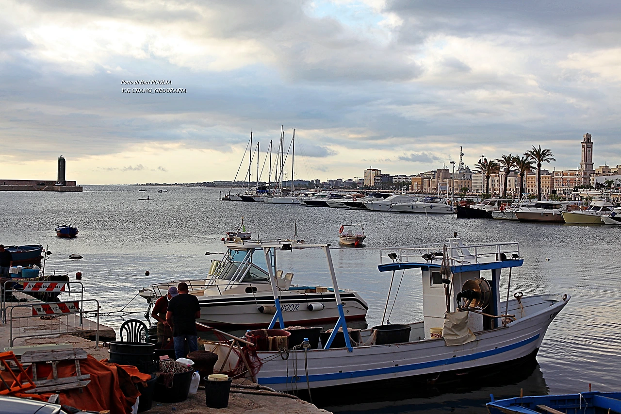 바리 항은 조용했다. 장소를 이동해 부두에 도착해 보니 맨 먼저 어부 두 사람이 그물을 손질하는 풍경이 눈에 들어왔다. 낯익은 풍경이다. 부산이 고향인 내게 이런 풍경은 익숙하다. 부산 남항에 가면 흔히 볼 수 있는 풍경이 눈 앞에 펼쳐진 것이다. 그곳엔 갈매기들이 늘 끼욱 끼욱 소리를 질러대곤 했다. 발아래 내항에는 작은 새끼 고등어들이 유영을 즐기고 있고 무지갯빛 기름띠가 파도에 일렁이고 있었다.