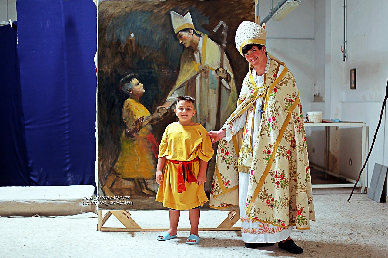 지난 19일, 아내의 그림 수업이 시작되기 전, 루이지는 "수업이 끝난 후에 특별한 장소로 안내하겠다"고 했다. 그곳은 이미 몇 차례 루이지가 함께 가 보자고 제안한 장소로, 성인의 초상화가 그려지고 있는 또 다른 화실이었다. 이 작업은 대략 한 달이 넘는 시간이 걸릴 것이며, 초상화가 다 그려지면 바를레타의 키에사 디 산 지아코모(Chiesa di San Giacomo (Barletta))에 봉헌될 예정이다. 비용은 거의 실비로 이루어지고 있었다. 그리고 이 작업에는 두 사람의 모델이 등장한다. 성인 역에는 16살의 남자아이가 성인이 건네고 있는 빵을 쥐고 성인을 바라보고 있는 아이는 7살짜리 어린아이였다.