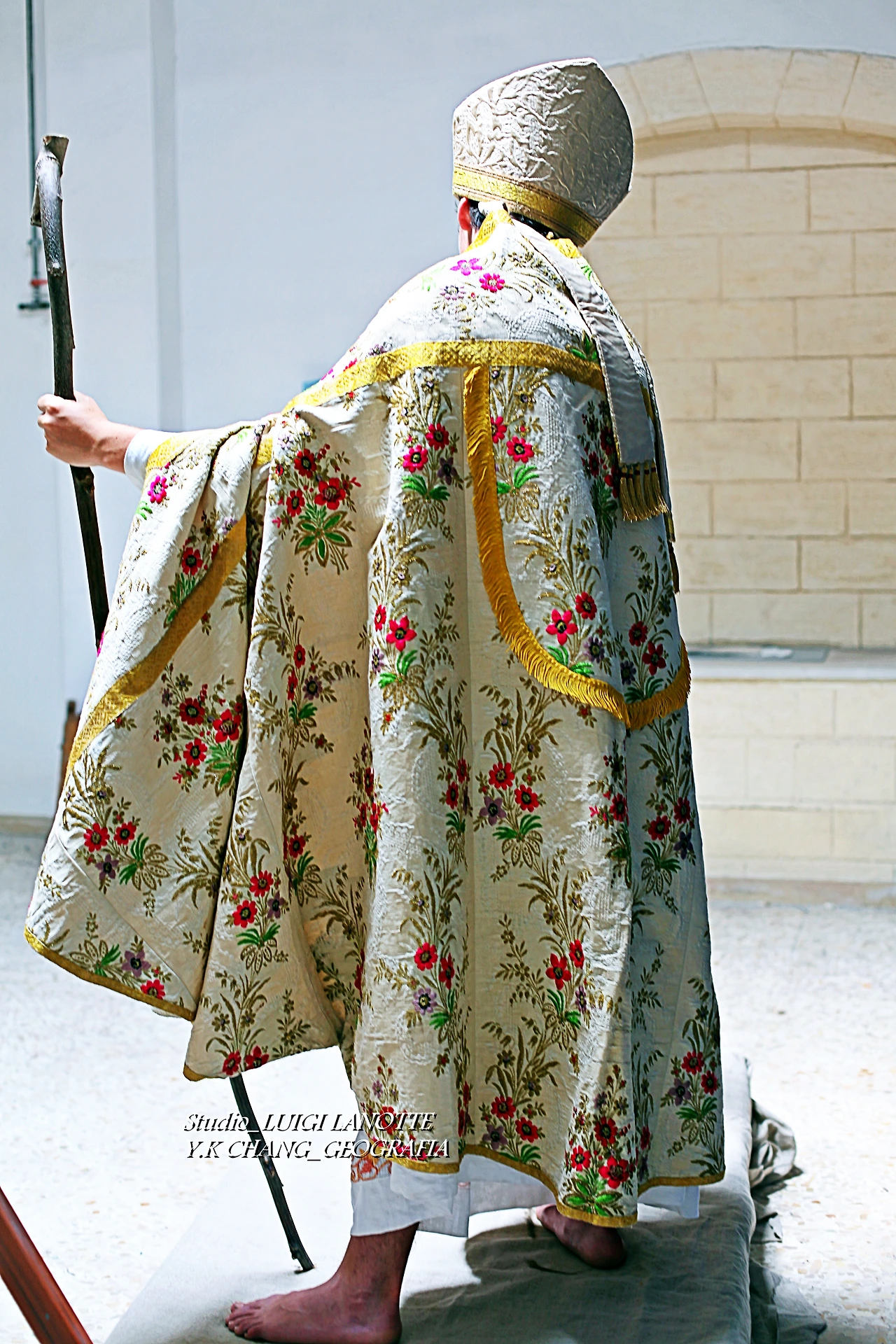 모델이 걸치고 있는 망토와 옷 그리고 지팡이는 루제로 수호성인이 사용하던 수제품이자 진품이다.