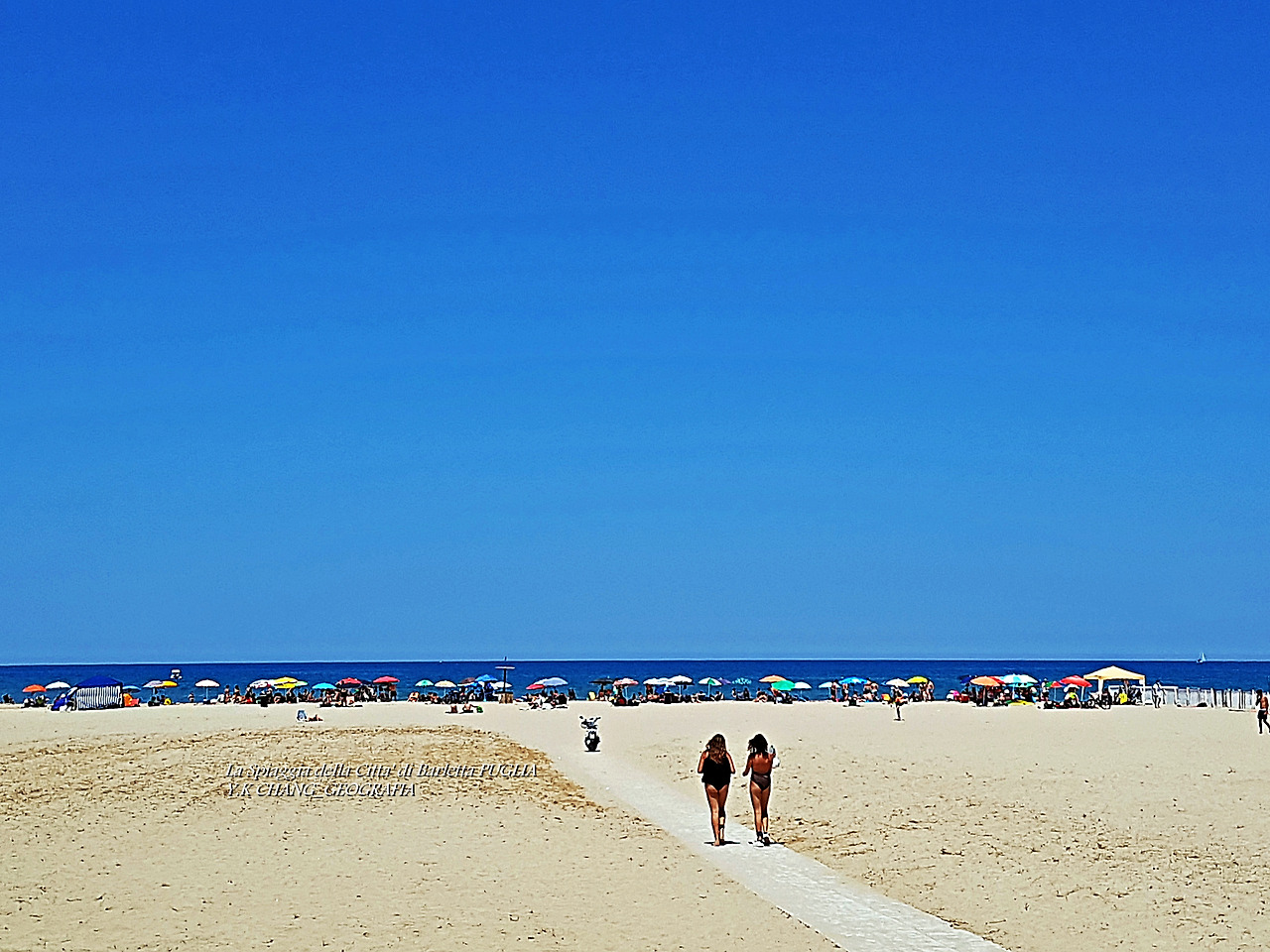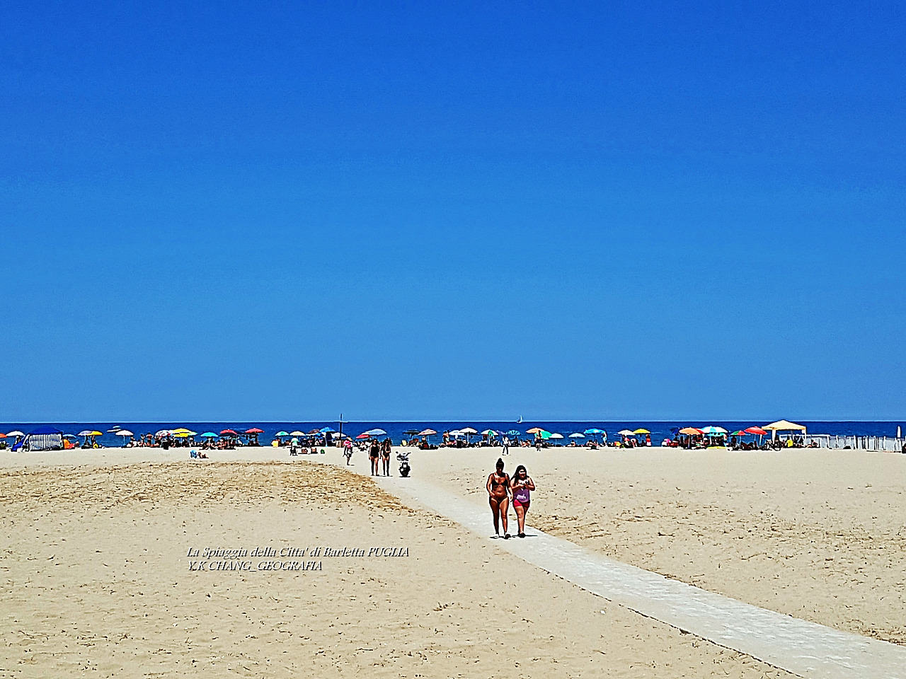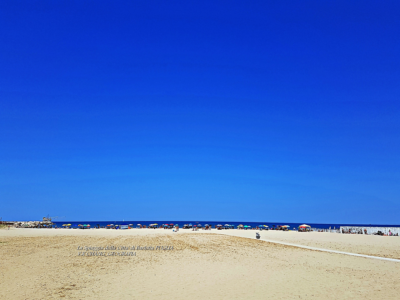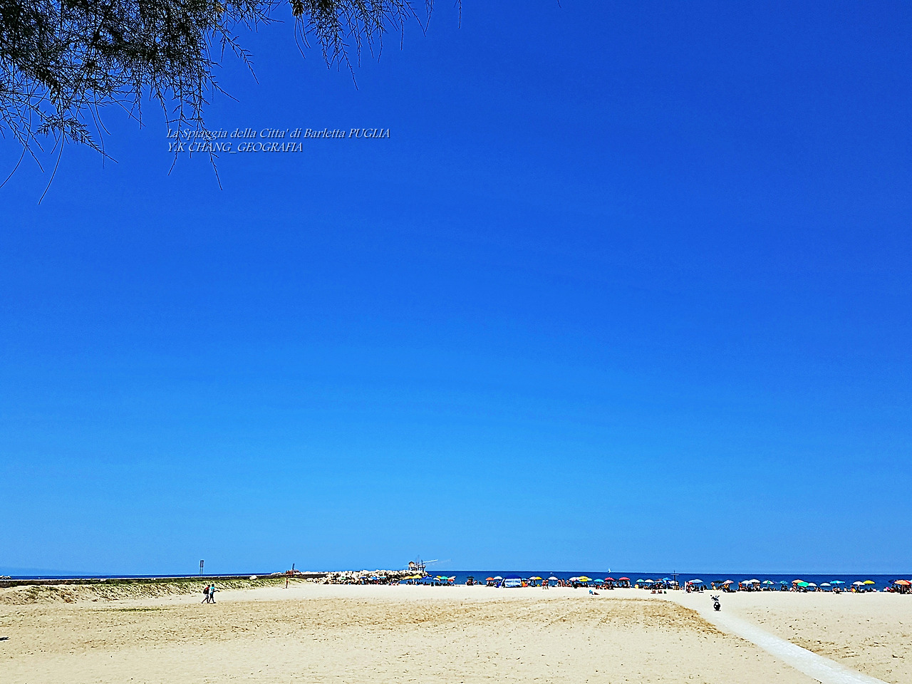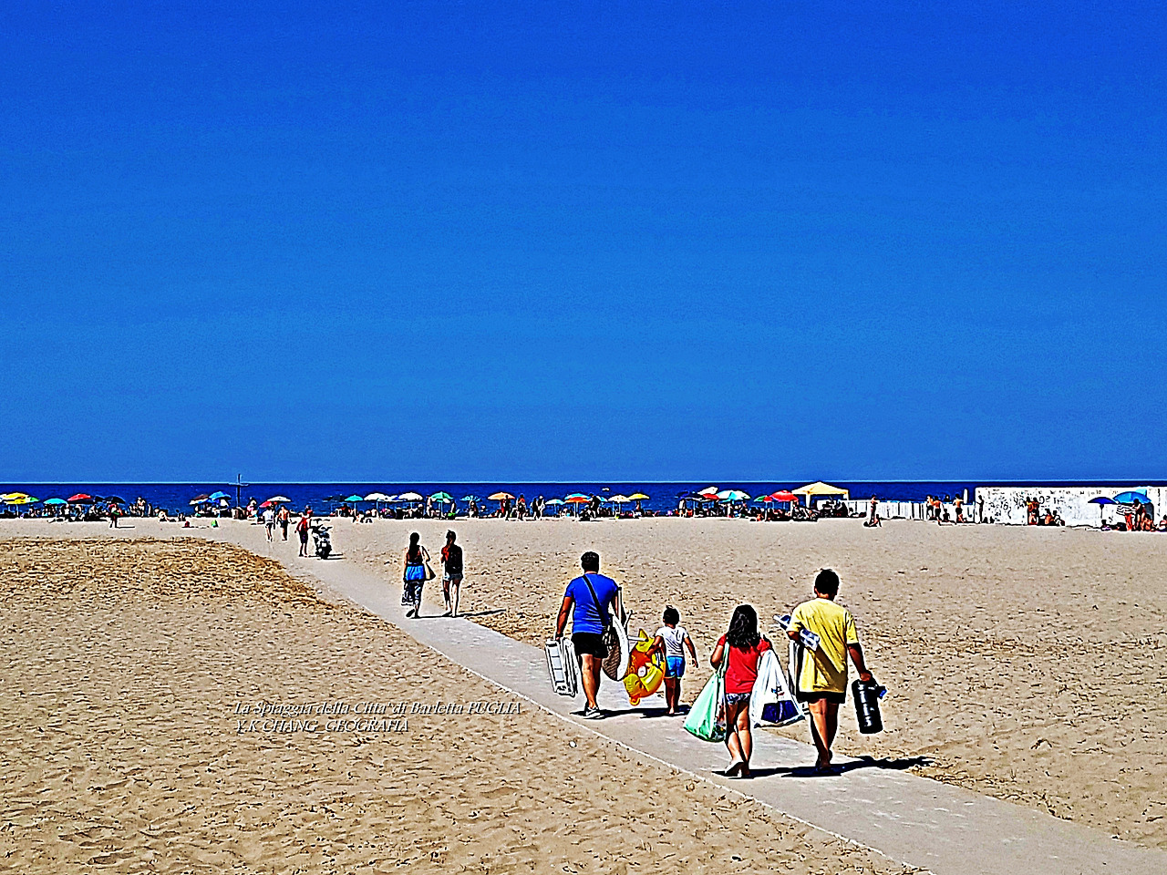 il 28 giugno 2020 A,c, alle 16:00, sulla spiaggia di Barletta, nel sud della Puglia, nel sud Italia, sono andata a fare una passeggiata con mia moglie. Il giorno della vacanza, la gente ha riempito la spiaggia e catturato il frangiflutti. La scena della stagione delle vacanze a tutti gli effetti .. Quando ne ho voglia, voglio arrotolarla e saltare in mare, ma ne ho voglia. Quando ho visto persone in spiaggia, non sono uscito in mare o al mare. Stavano scomparendo nel cielo oltre il Mare Adriatico. Dove il confine tra il mare e il cielo è ambiguo. Vita e morte sarebbero uguali? Ribaltando il paesaggio, queste erano persone dal cielo. Se cambi idea, il Paradiso non è sempre intorno a noi?
