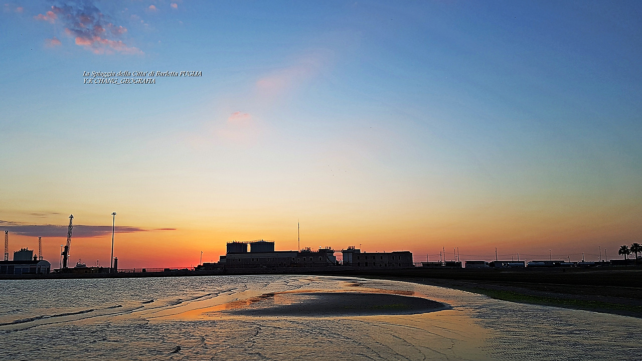 이탈리아 남부 뿔리아 주 바를레타 해변의 일출