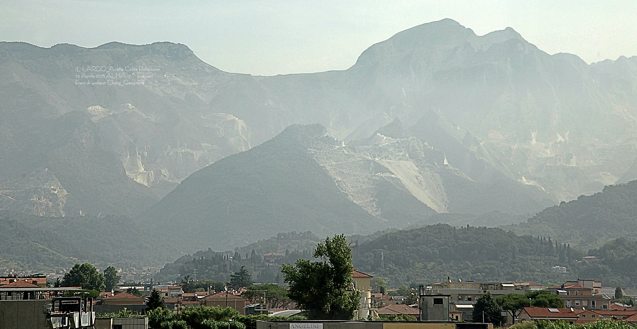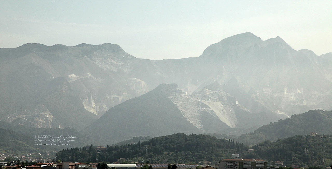 그동안 얼마나 많은 대리석을 채굴했던지 멀리서 보면 산꼭대기 혹은 중턱이 마치 눈을 머리에 하얗게 인 알프스를 연상케 한다. 곳곳에 스키장이 널린 듯한 풍경을 자아내는 곳. 그래서일까. 이곳의 산군에는 알프스 산맥의 이름을 딴 알삐 알뿌네(Le Alpi Apuane)라는 이름이 붙여졌다. 해발 1,946m에 이르는 이 산은 이탈리아 북부의 척추를 이루고 있는 아뻰니니 산맥(Gli Appennini)의 일부이며, 이곳에서 가까운 산아래 꼴론나따(Colonnata) 지역에서 우리가 잘 모르거나 글쓴이는 전혀 모르고 살았던 라르도가 생산되고 있었던 것이다.