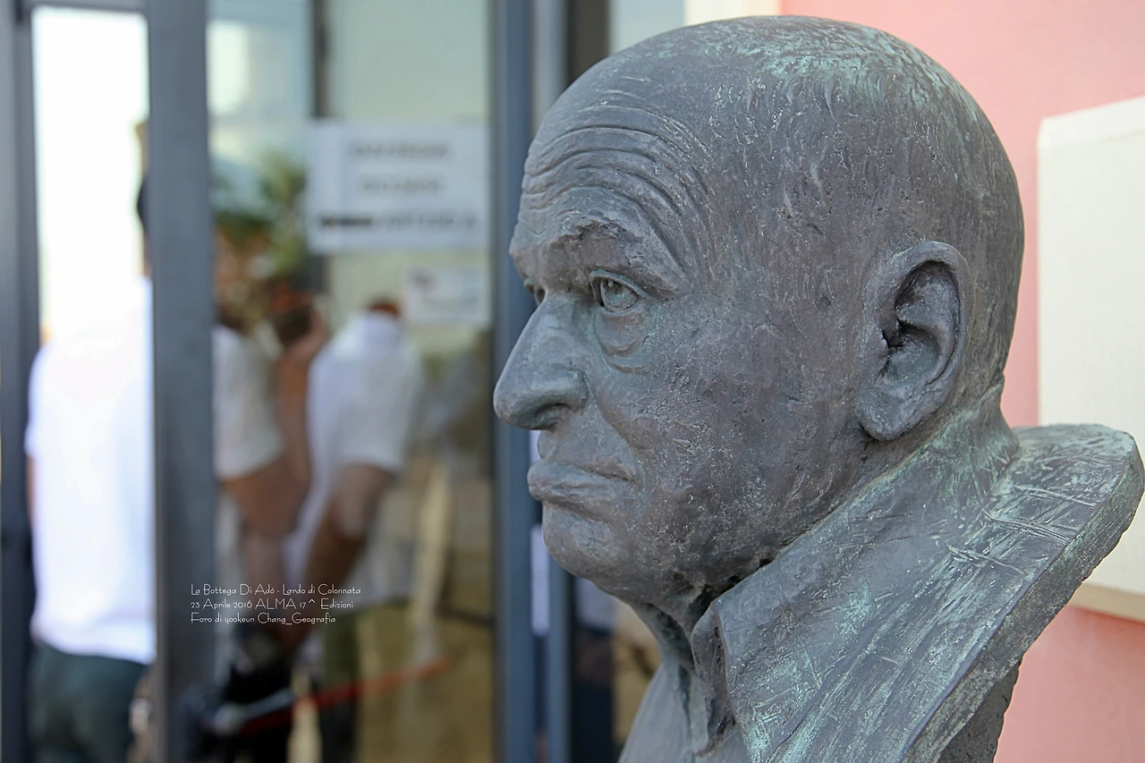 우리 일행이 둘러볼 라르도 생산 현장(링크)은 이탈리아를 찾는 관광객들이라면 누구나 둘러볼 수 있도록 편리하게 만들어진 곳. 현장 입구에는 이곳에서 생산된 각종 라르도는 물론 살루메, 빤체타, 라르도 크레마 등을 공장도 가격에 판매하고 있었다. 그리고 현관 입구에서 마주친 흉상에서 고집스러운 한 노인의 표정을 만나게 됐다.