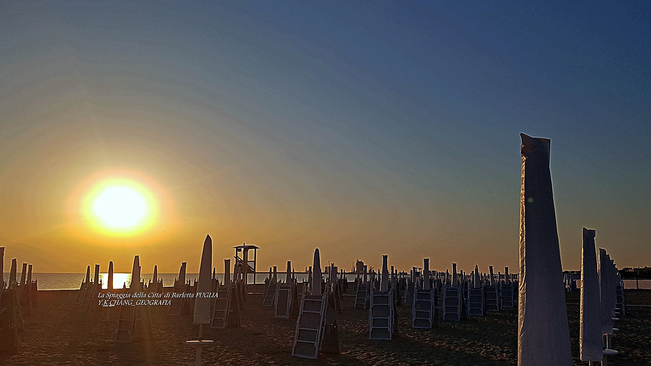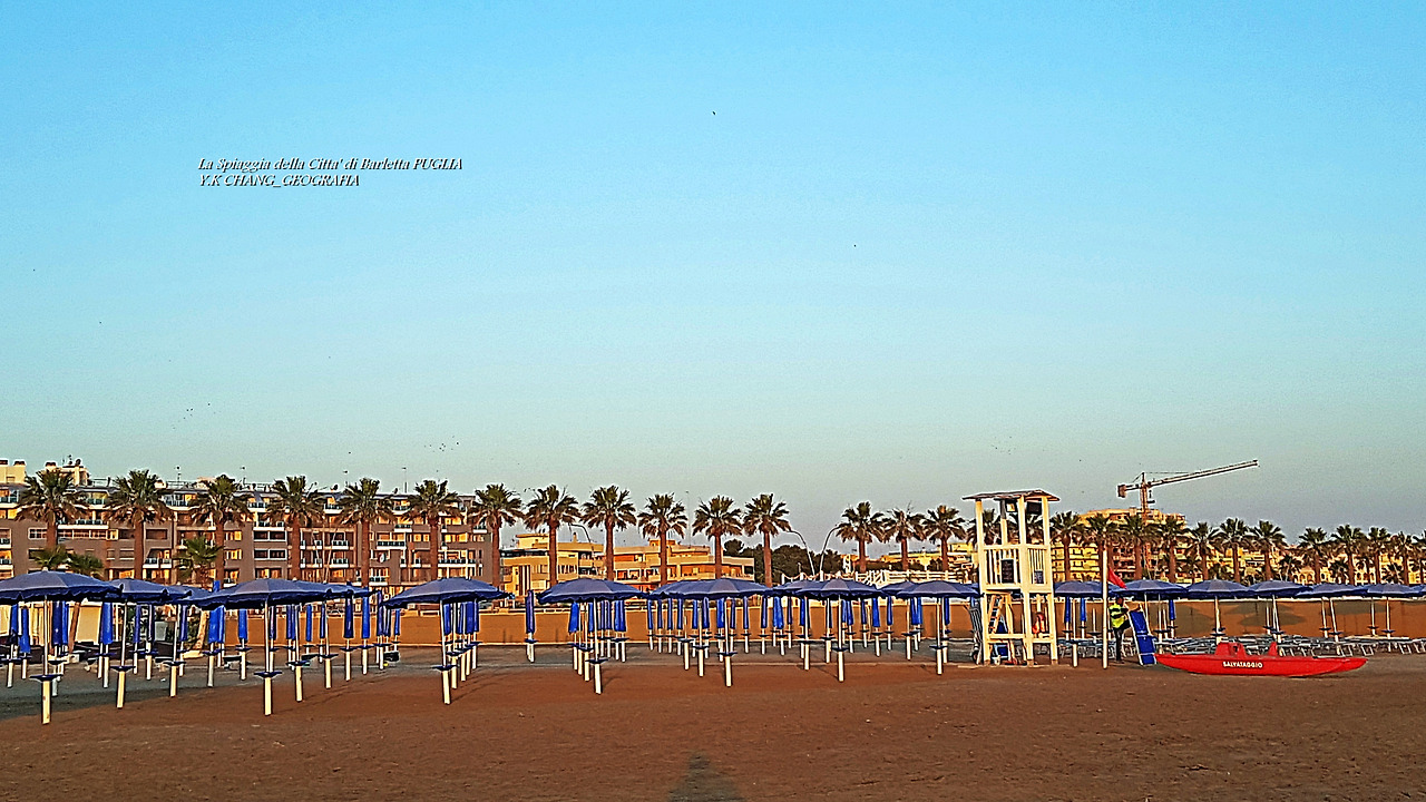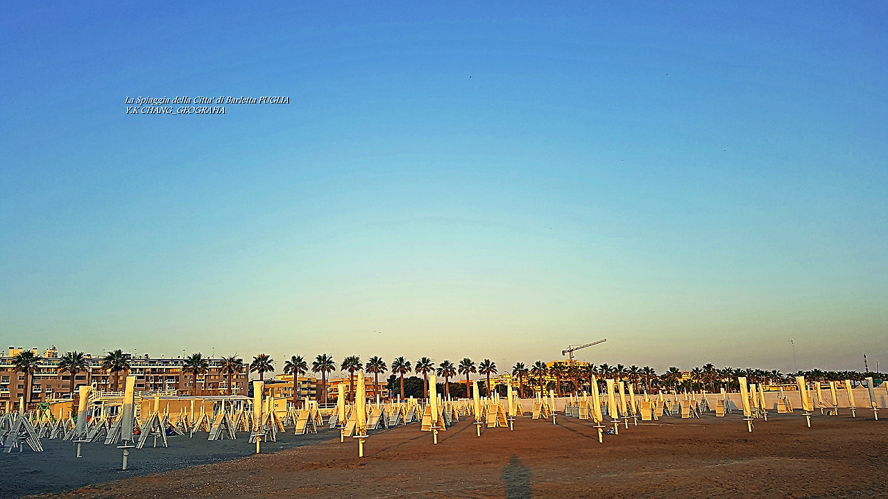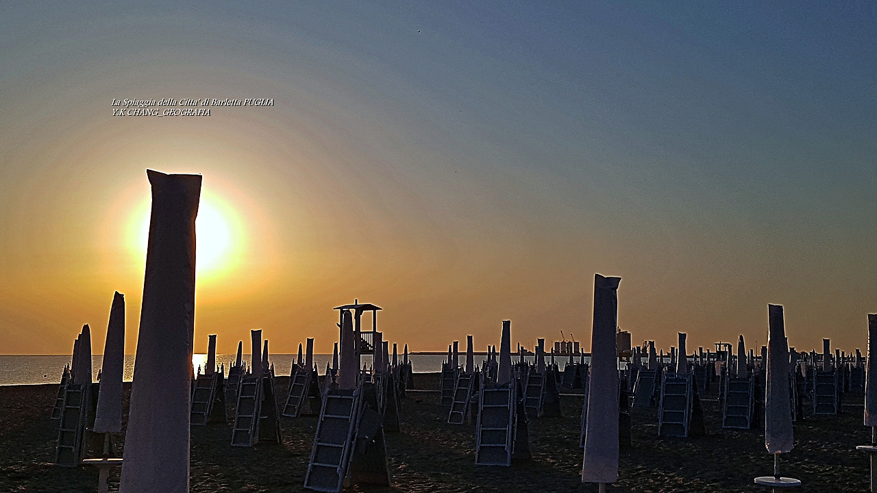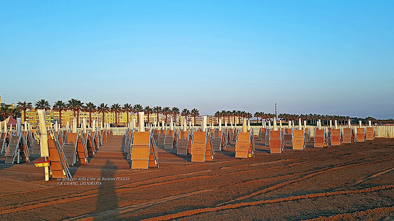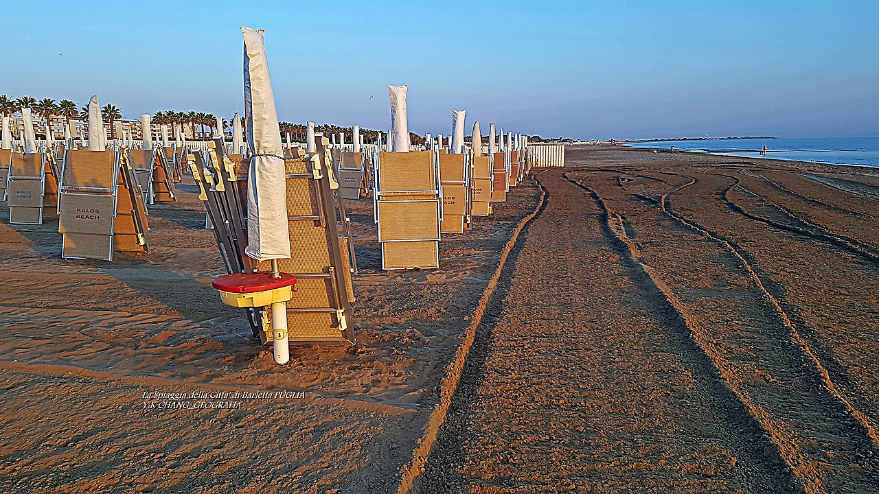 서기 2020년 7월 2일 오전 5시 30분경, 이탈리아 남부 뿔리아 주 바를레타의 바닷가에는 비치파라솔이 주인을 기다리고 있었다. 아드리아해 곁에서 가지런히 가지런히 줄지어 서서 해야해야 나오너라 해야해야 나오너라..