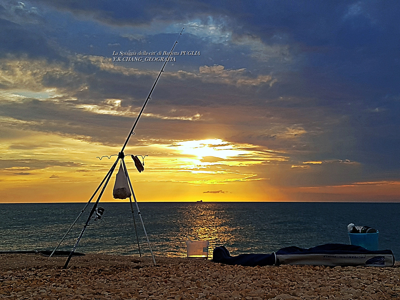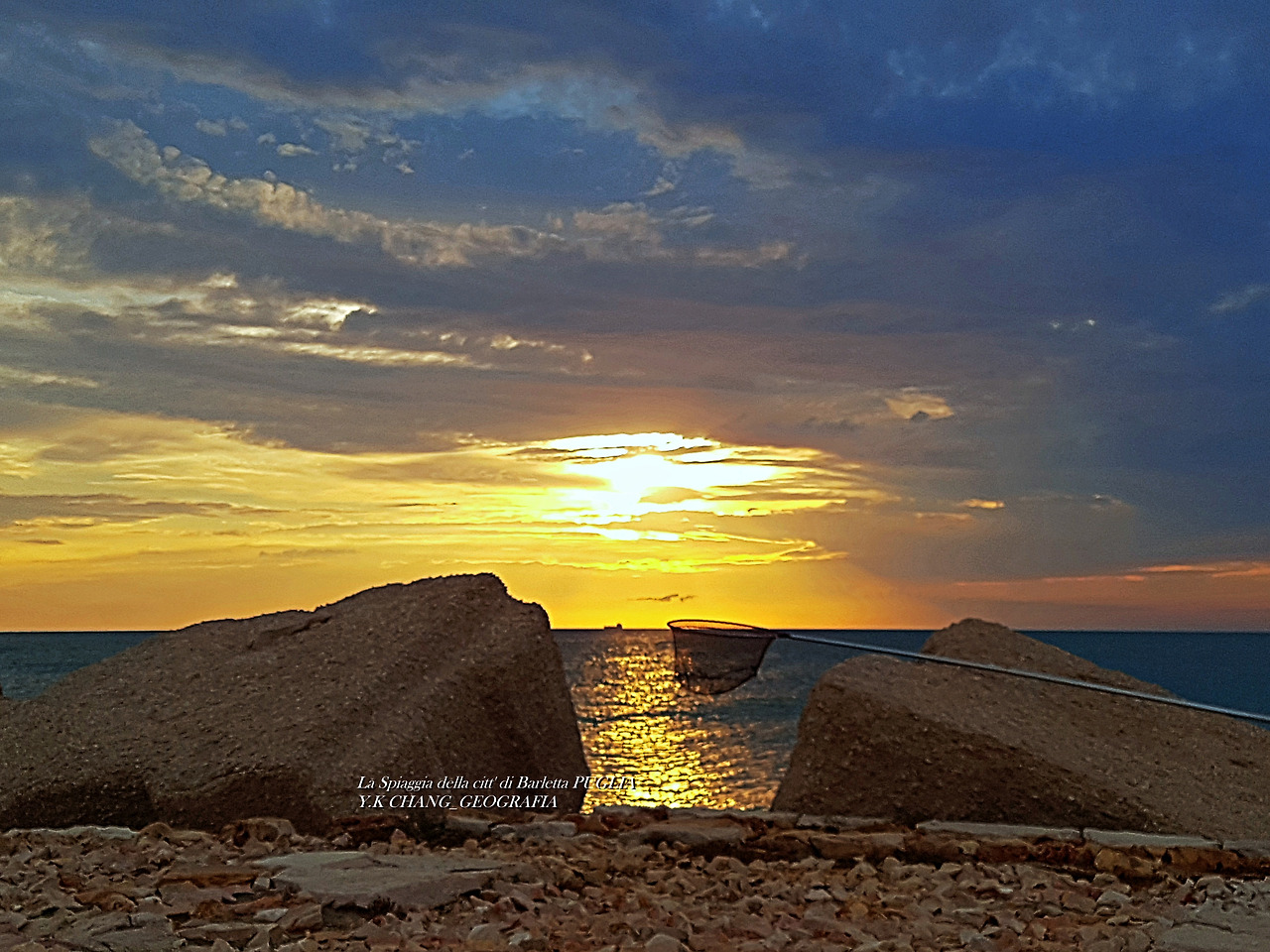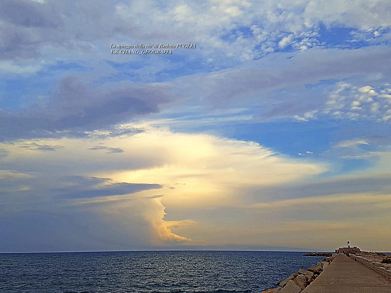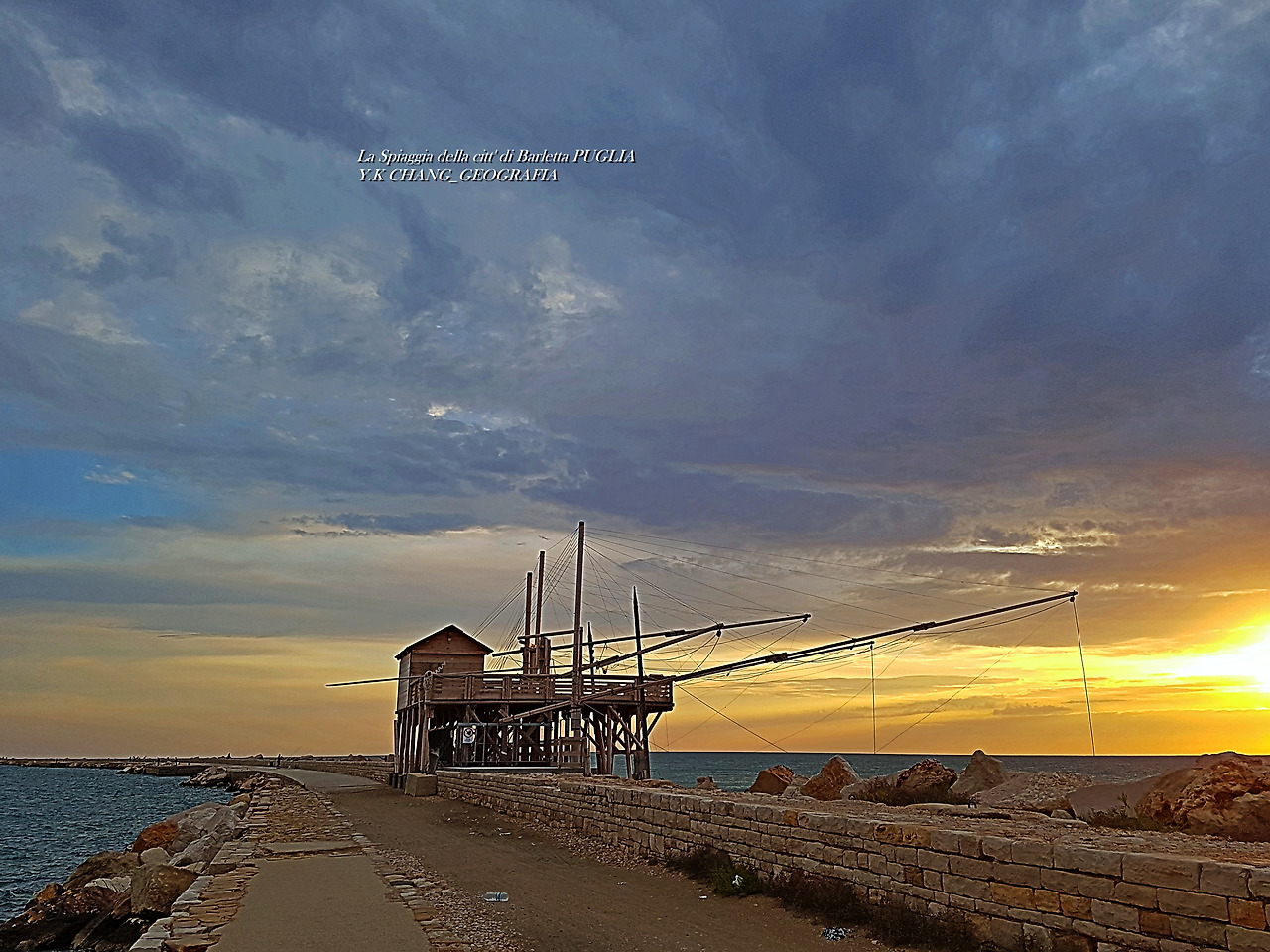 수평선 오른쪽으로는 바를레타 내항을 보호하고 있는 방파제로 시설물이 하나 보인다. 시설물 이름은 재래식 고기잡이 도구로 일 뜨라부꼬(Il Trabucco)라 부른다. 바를레타의 명물(Il Trabucco di Barletta)로 모두 허물어진 것을 최근에 다시 완성을 했다. 설명을 따로 하기로 한다.