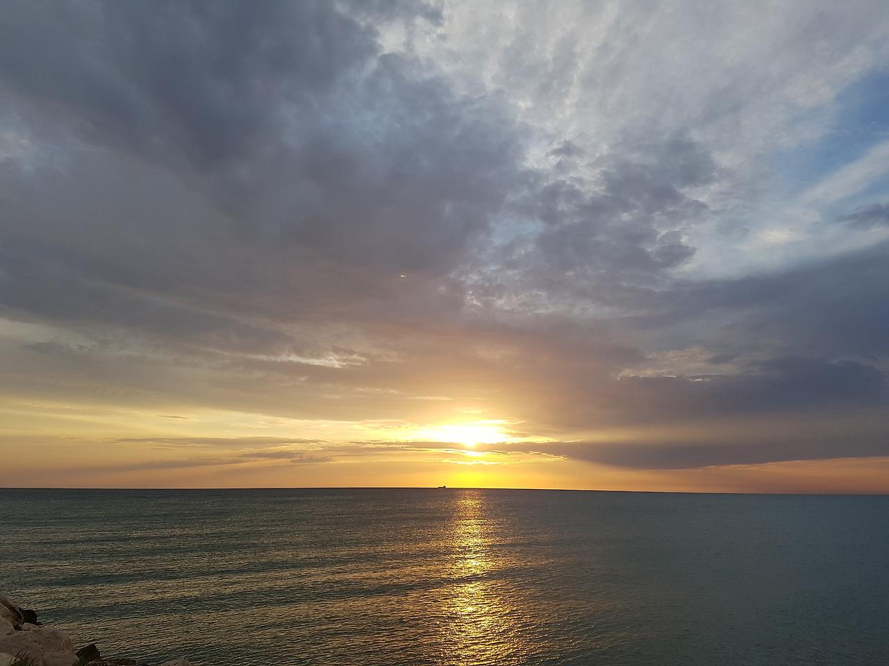 방파제에서 아드리아해를 바라보니 수평선 위로 커다란 배 한 척이 지나가고 있는 게 눈에 띄었다. 황금 빛 햇살과 배 한 척.. 아무런 제목을 붙여도 멋진 작품이자 그림으로 다가왔다. 이때부터 나의 시선은 줄곧 방파제 외항의 아드리아해에 머물렀다. 내 고향은 부산.. 우리나라는 이탈리아처럼 반도의 나라.. 바다를 한 두 번 본 것도 아닌데 이곳에 둥지를 튼 후부터 바다는 무척 친근해졌다. 때 묻지 않은 처녀지처럼 날이면 날마다 새 옷을 갈아입고 내 앞에 나타나는 것이다.