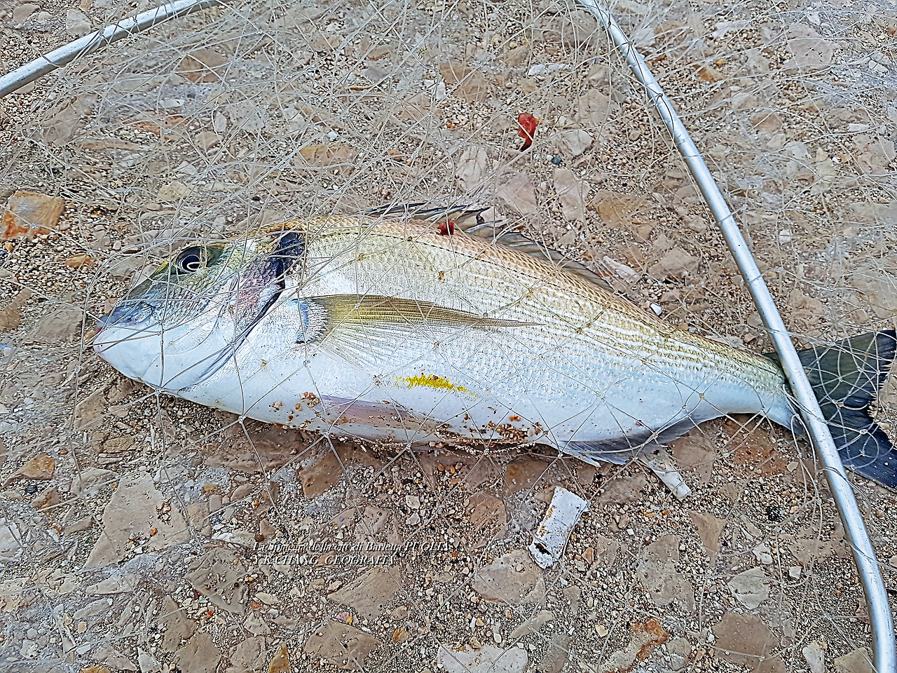 나는 어느덧 방파제 끄트머리까지 걸어왔다. 그동안 낚시꾼들의 동태를 살피며 천천히 방파제 위로 걸어왔다. 이날 아침 바람이 많이 불었지만 낚시꾼들의 수는 평소보다 눈에 띄게 많아 보였다. 물 때가 좋았던지 이곳저곳에서 월척을 건져 올리고 있었다. 방파제 끄트머리 빨간색을 칠한 등주 오른쪽에서 다시 카메라에 포착된 물고기 포획 현장을 만날 수 있었다.