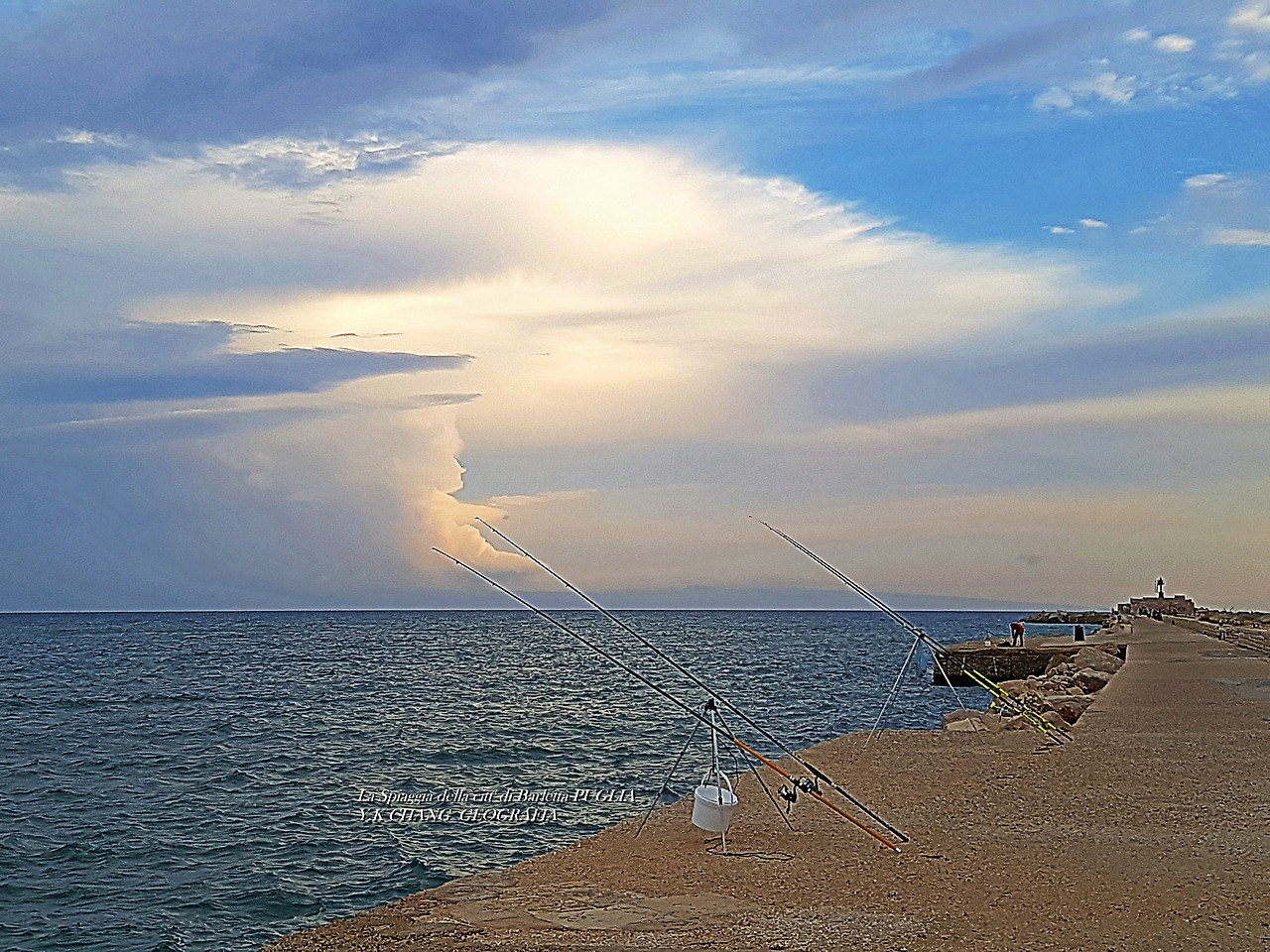 다시 조금 전 대어를 낚은 상황으로 돌아가 볼까.. 나는 대어를 포획하는 현장을 영상에 담 고난 다음부터 한동안 잊고 살던 '구닥다리 유행어'를 생각해 냈다. 저만치 아드리아해 너머(이탈리아 지도 장화 뒤꿈치 부분)에 걸린 구름까지 낚시꾼의 표정을 닮은 것이다. 작은 의자에 앉거나 혹은 갯바위 위에서 낚싯대 끄트머리 너머 찌를 바라보고 있는 형상이 얼추 문제를 제기하고 나선 것이다. 그 문제의 유행어를 요약하면 대략 이러하다.