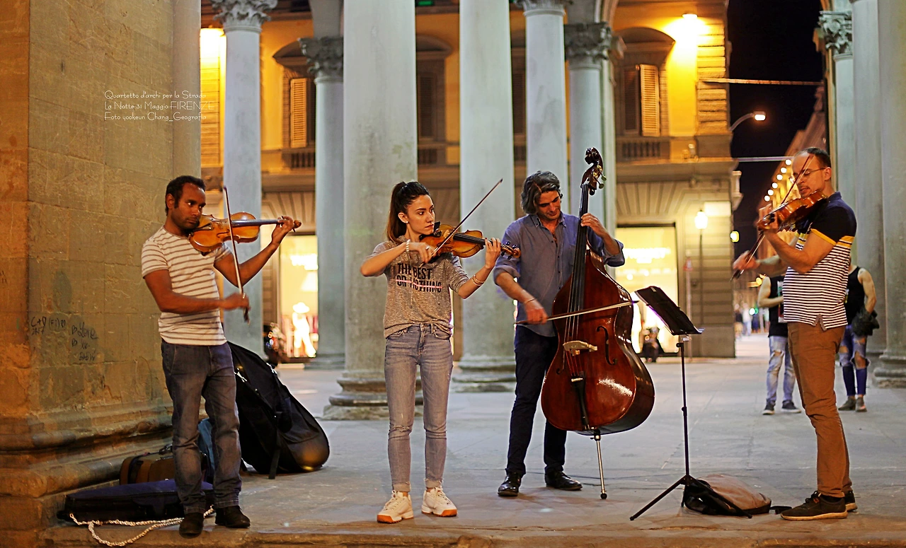 이들은 공연의 형태 등에 따라 수입도 달라지곤 했는데 곁에서 지켜본 결과 연주자가 누리는 수입은 사람들의 감동의 결과에 따라 많이 달라졌다. 따라서 간밤에 듣게 된(보게 된) 메르까또 델 뽀르첼리노(Mercato del Porcellino) 앞 현악 4중주(Il quartetto d'archi)는 조금은 특별했다. 길거리에서 실내악을 감상하기란 쉽지 않은 일. 현악 4중주를 구성하고 있는 악기들의 특성상 실외 공연은 산만하여, 감상자로 하여금 집중력을 떨어뜨리게 할 뿐만 아니라 악기 고유의 음색까지 흩트려 놓는 것이다. 안타까운 장면이었다. 그럼에도 불구하고 사람들은 기꺼이 감사의 표시를 한다. 연주가 끝나기 무섭게 동전을 보태거나 박수를 보내는 것이다. 그런 한편 이들의 공연을 통해 우리가 알고 있던 한 연주자를 떠올리게 만들었다. 고급 악기를 동원한 이른바 길거리 현악 4중주는 네 사람이 동원되었음에도 불구하고 수입이 너무 적었기 때문이었다.