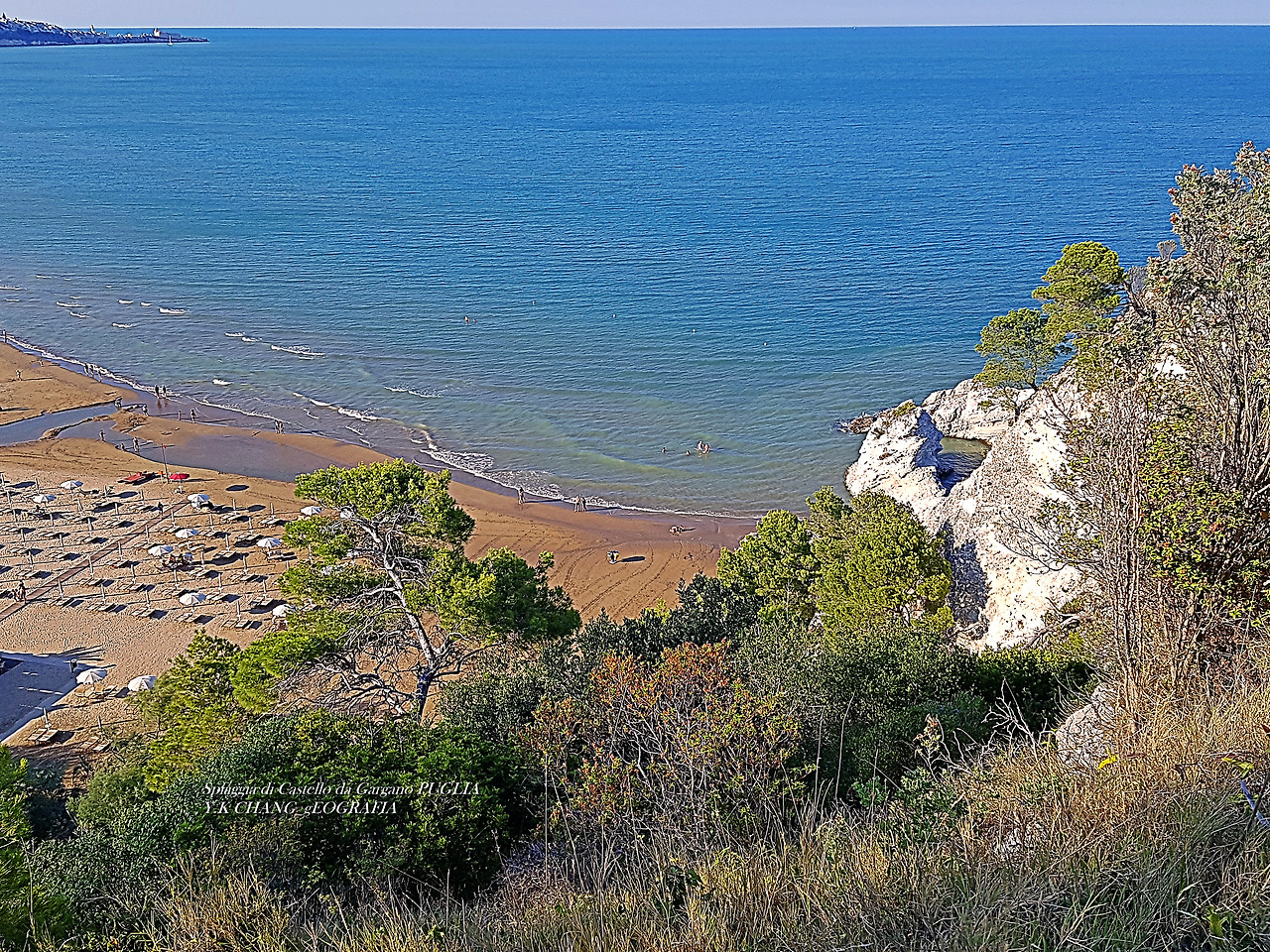 그리고 우리는 지난 7월 6일 오후 스피아지아 디 까스뗄로(Spiaggia di Castello)가 내려다 보이는 언덕 위에서 눈이 휘동그래지는 것이다. 지구별의 수많은 해변과 백사장과 해수욕장 등을 평생 눈팅해 온 나의 눈에 전혀 새로운 모습으로 다가온 것이다. 우리를 위해 예비해 둔 아름다운 장소는 적지 않은 시행착오와 시련을 요구하며 마침내 속살을 드러내 보인 것이랄까.