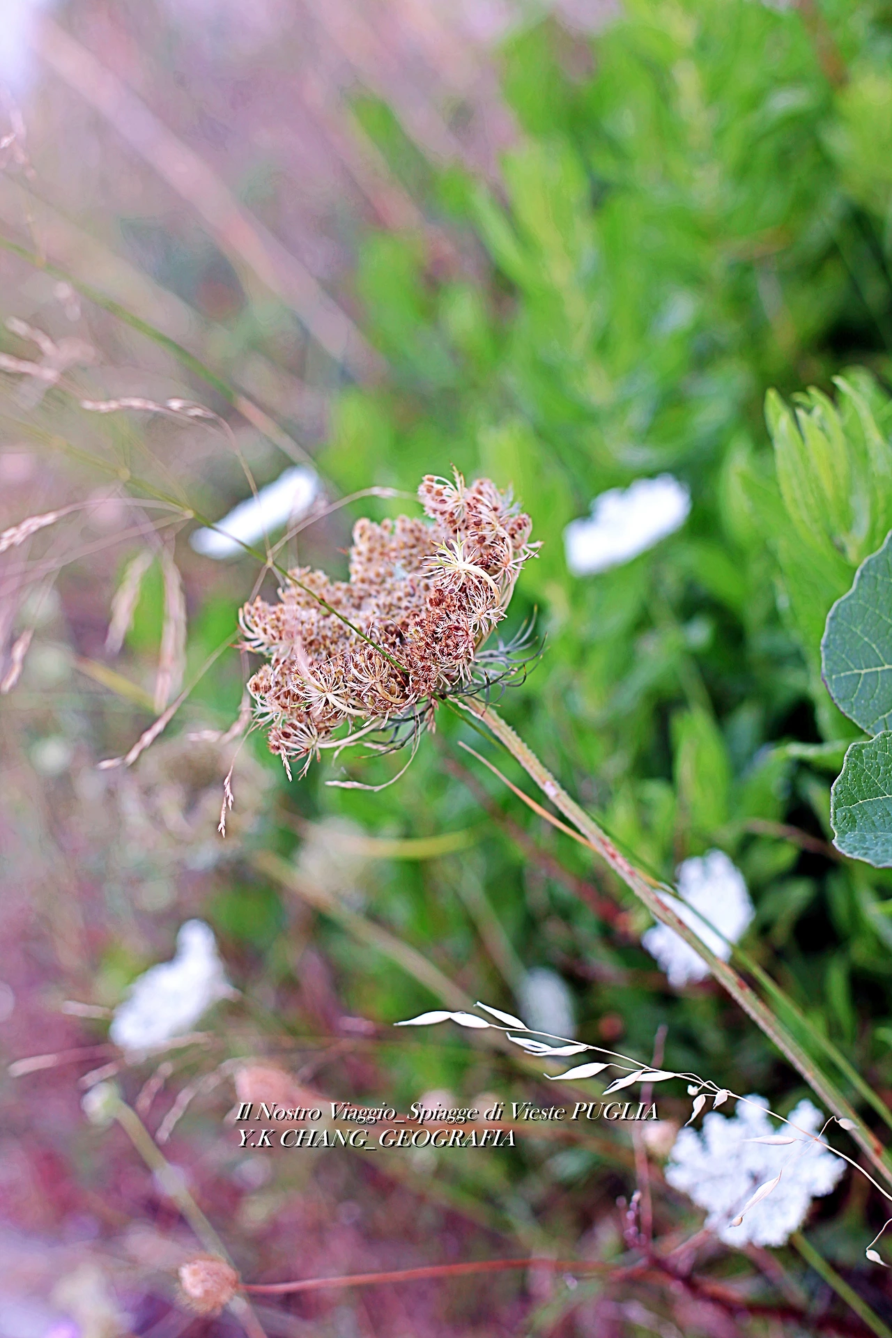 표지 사진 아래 자동차 한 대가 주차된 곳이 뷔에스떼 해변(Spiaggia di Vieste)이 잘 조망되는 언덕 위의 모습이고 해질 녘 풍경이다. 하니가 잠시 짐을 고르고 있는 동안 나는 언덕 곁에 자생하고 있던 야생화로 다가가 카메라에 담고 있었다. 녀석들은 어느새 가을 옷을 갈아입고 어디론가 떠나려는 모습들. 우리가 겨우 이곳에 도착했는데 그들은 먼 여행길을 준비하고 있는 것이다.