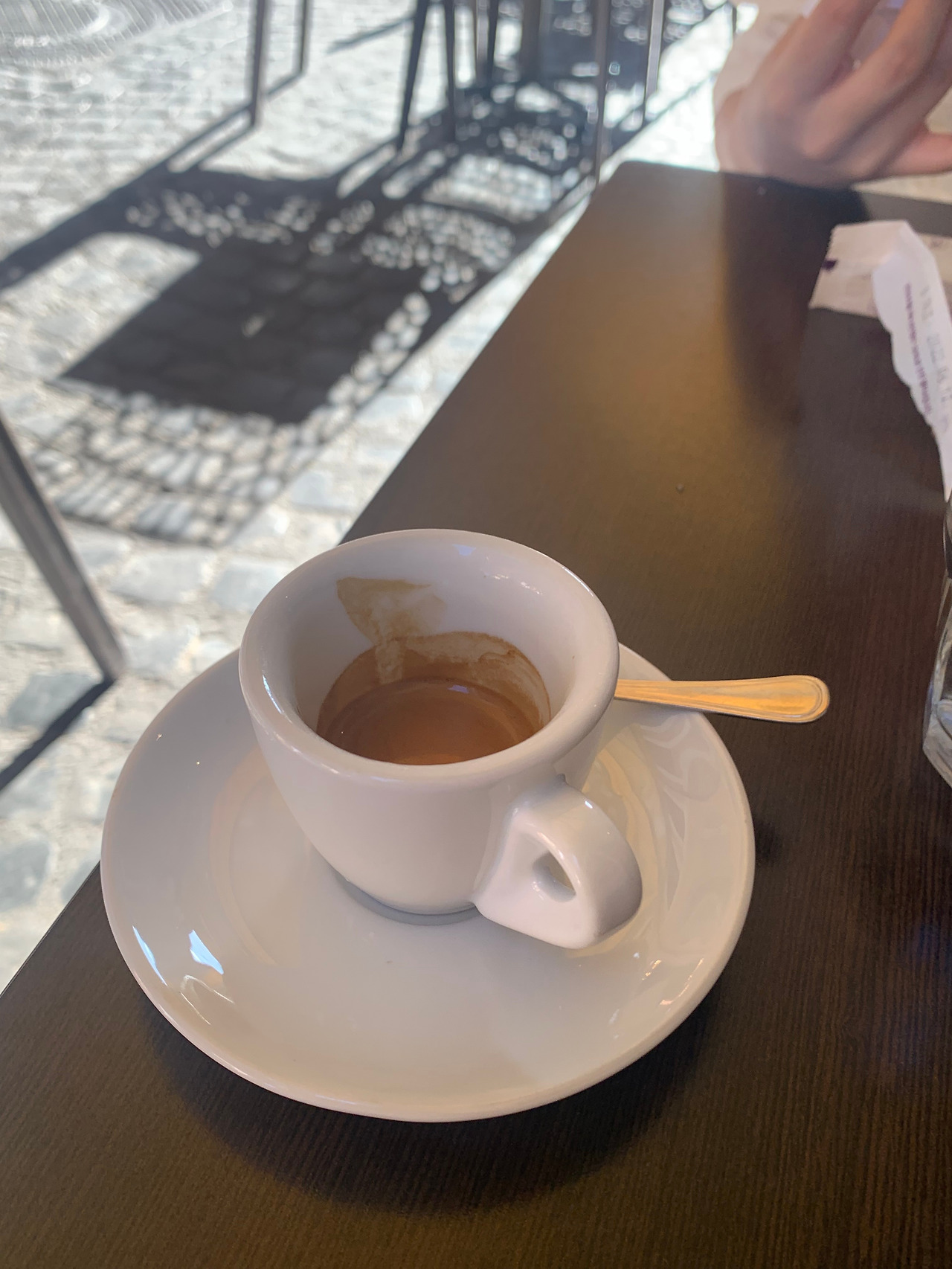 생각보다도 부드러워 목넘김이 좋았다. 적당히 진하고 약간의 단맛도 느껴졌다. 정말로 두 모금 만에 없어져 아쉬웠는데 이탈리아에 머무는 동안은 꼭 하루 한잔씩은 먹고 가야겠다고 생각했다.