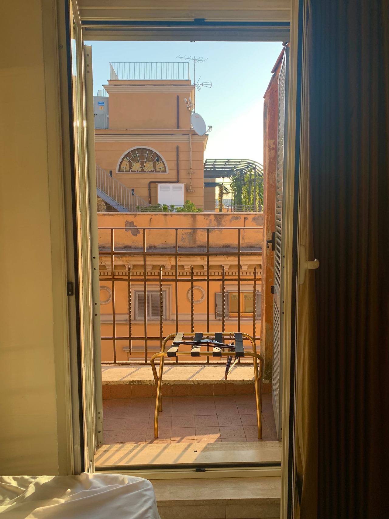 이 밤에, 피로로 기름진 이마와 축 처진 어깨에도 놀라워하며 사진 찍은 엘리베이터! 이게 엘리베이터라고요? 비상구 아니고요? 26인치 캐리어와 사람 두 명이 간신히 들어가는 비좁은 공간이 엘리베이터라니. 유럽은 오래된 건물을 허물지 않고 보수하여 쓰기 때문에 엘리베이터가 없는 경우가 많다고 했는데, 그렇게 만들다 보니 어쩔 수 없는 구조였던 듯하다. 지내다 보니 엘리베이터는 자주 고장이 나 멈췄고, 그 작고 막힌 공간에 사람이 갇혀 엉엉 울며 나오기도 일쑤였다. 인솔자님은 늦은 시간에 호텔까지 이동, 체크인, 인터넷 연결까지 도와주셨다. 겨우겨우 혼자가 되어 객실 침대에 대자로 뻗고 나서 확인한 시간 02:56 AM. 으아! 하는 소리가 절로 나왔다.