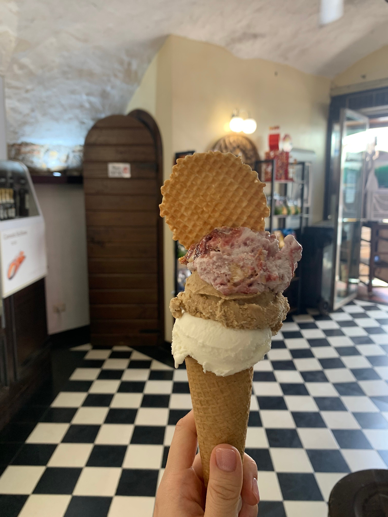 여기까지 보고 숙소로 피신을 가야만 했다. 더는 이 뜨거운 태양 아래 머무를 수가 없었다. 오아시스를 찾듯 커다란 아이스크림 모양을 보았던 가게로 들어가 젤라또를 사 먹었다. 역시 이탈리아에선 1일 1젤라또! 젤라또 만만세!