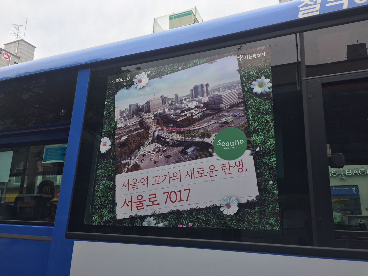 우리를 서울역 시계탑으로 이끈 건 <서울로 7017>이었다. 정원이 된 옛 고가다리, 요즘 가장 핫한 그곳. 서울역행 버스 곳곳에서 우리를 반기고 있었다.
