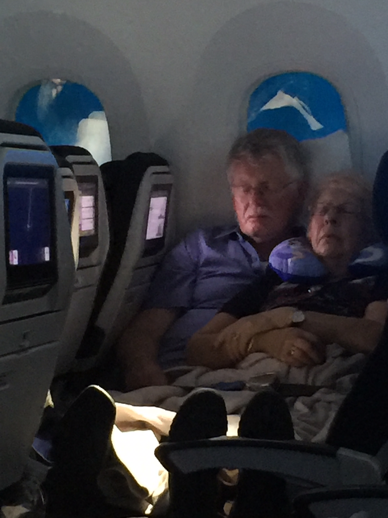 나란히 누운 노부부의 밤비행을 보며.