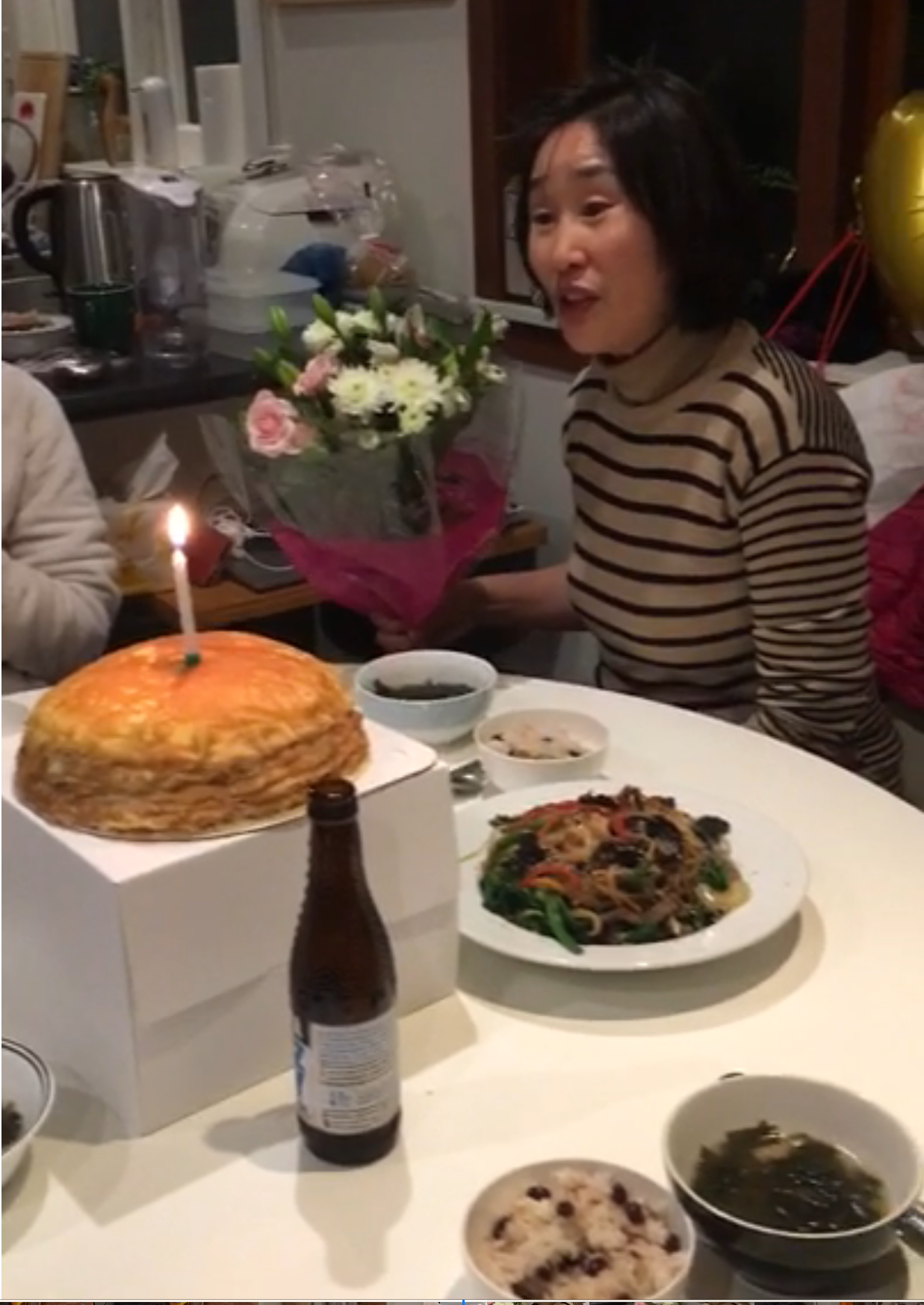 남편은 꽃다발을, 나는 케이크를 준비했다.
