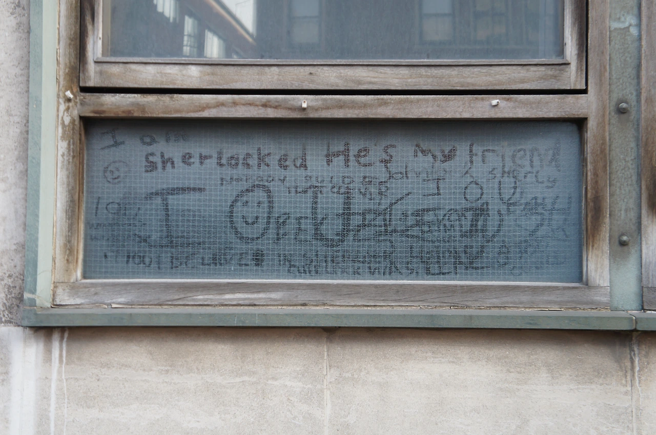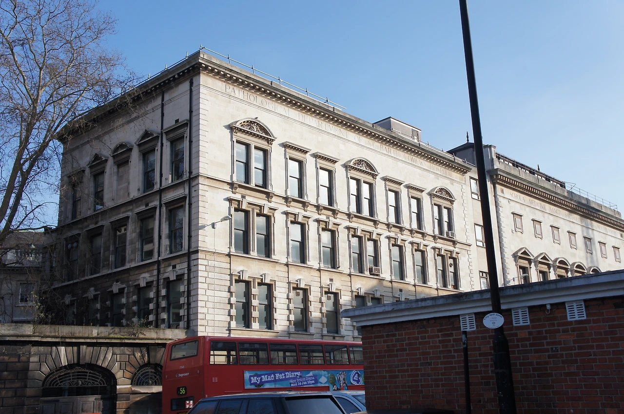 셜록은 이 곳, 바르톨로뮤 병원 옥상에서 떨어져서 죽었었다. 그리고 살아난다. 하지만 그가 죽지 않았음을 확인하기까지 가슴 졸였을 수많은 매니아들이 이 곳에 찾아와 간절한 메시지를 남겼다. 병원 앞 공중전화 부스, 벽, 버스 정류장 곳곳에서 "셜록, 부디 죽지 마시라."는 쪽지를 발견할 수 있었다. (나도 하나 남겼다. 아주 간절한 마음으로.) 그가 살아있다는 것을 확인한 지금은 아마도 다 지워지지 않았을까.