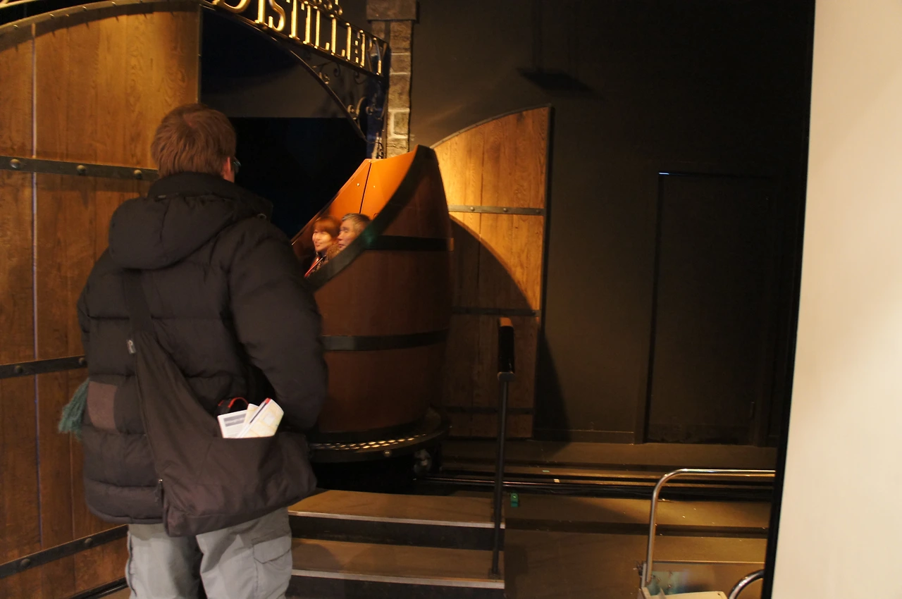 유료다. 2만 원이 넘는다. 하지만 흥미로운 구성 덕에 돈이 아깝다는 생각은 전혀 들지 않았다. 그 중 하나는 위스키 통처럼 생긴 이 관람기구(?) 였다. 통이 빙그르르 돌며 운행되는 사이 유령같은 사이버 캐릭터가 위스키의 역사와 제조 과정을 설명한다. 통 안에 앉아 있자니 놀이공원 <사파리> 같았고, 유령의 설명을 듣고 있자니 <신밧드의 모험>같았다.