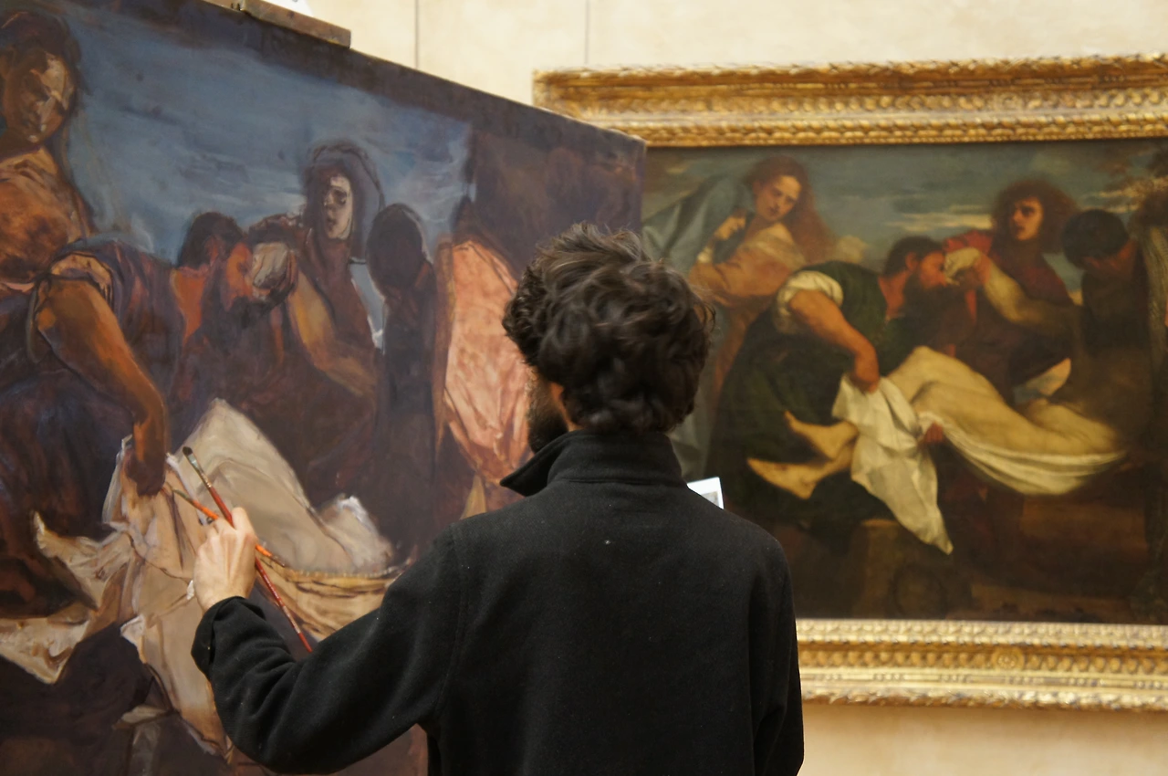 하지만 아무리 진귀한 유산인들 아무리 가이드가 잘 되어 있다 한들 '우와~' 몇 번 하고 나면 이 놈이 그 놈인가 싶어지는 게 사실이다. 그렇게 유럽을 돌면 돌수록 유명 박물관과 미술관의 감흥이 0에 수렴하게 된다. 이유는 크게 3개다. 전공자가 아닌 바에야 작품을 깊이 이해하지 못한다. 작품의 수가 너-무 많다. 나에게 와닿지 않는다. 나 역시 그랬다. 아무리 생각해도 하품으로 날려 버리기엔 다시 오지 않을 이 기회가 너무 아까웠다. 그리고 그 시간을 좀 더 특별하게 만들 수 있는 힌트는 쉴새없이 움직이는 인파 사이로 말뚝처럼 박혀 있는 이들이 주었다.