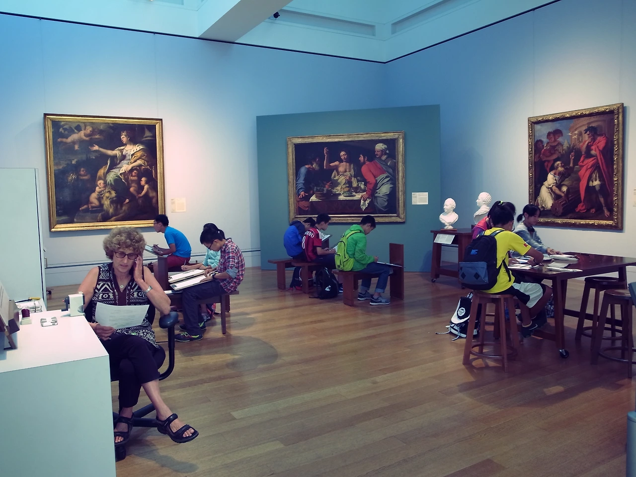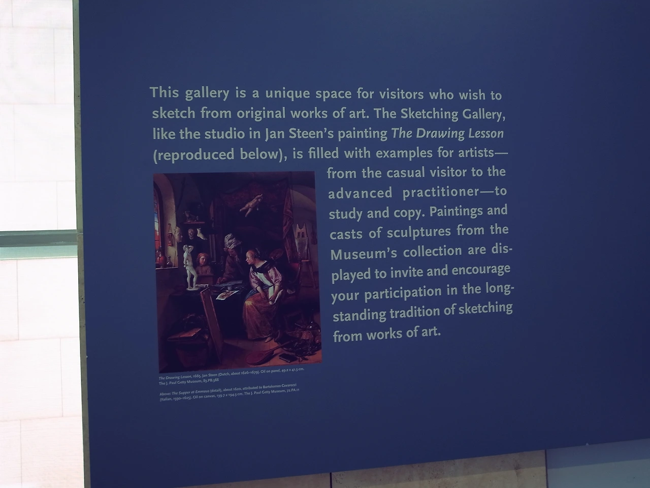 게티 센터는 정말 어린이 친화적인 미술관이다. 스케칭 갤러리는 그 대표적인 사례. 미술관에 소장되어 있는 명화를 앞에 걸어 둔 채 나만의 화폭을 채울 수 있는 공간이다.얀 스테인 Jan Steen의 <The drawing lesson>에서 모티브를 얻은 공간이라고 한다.