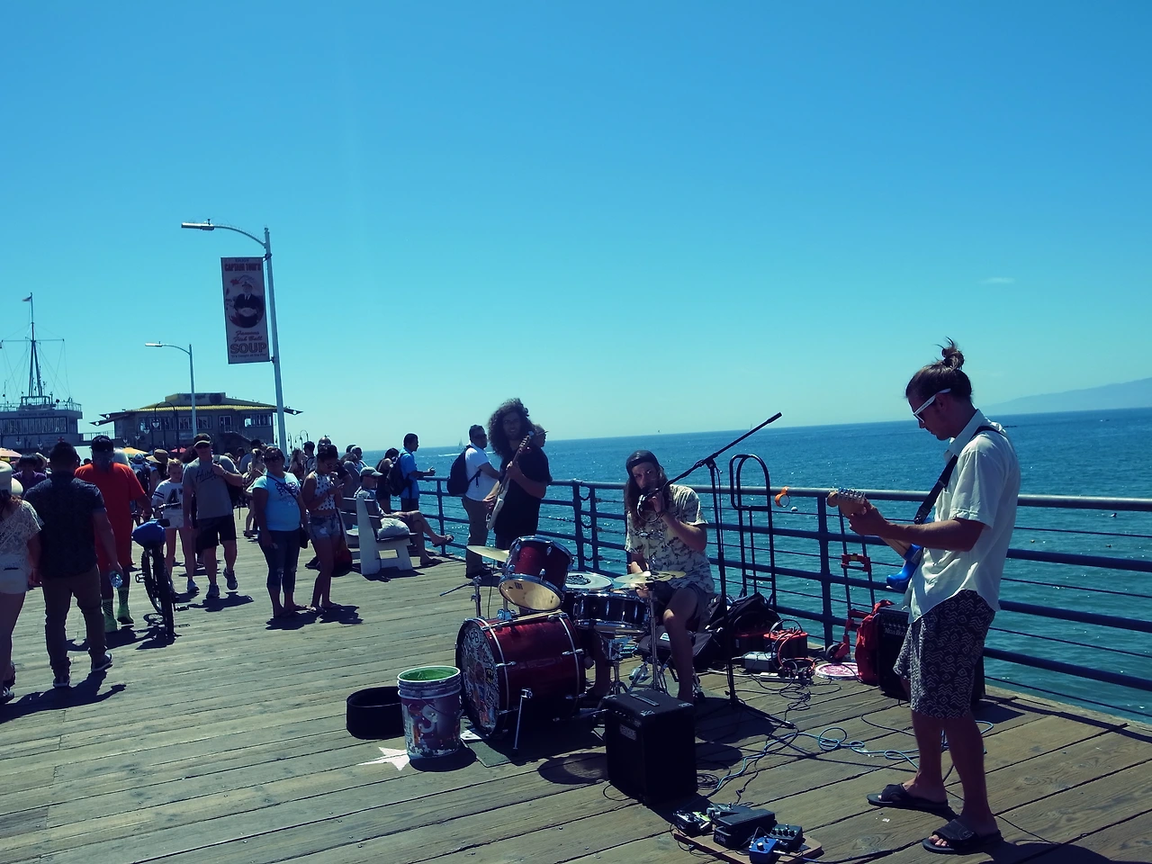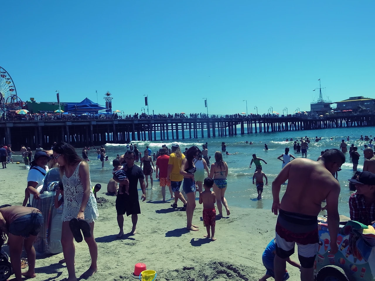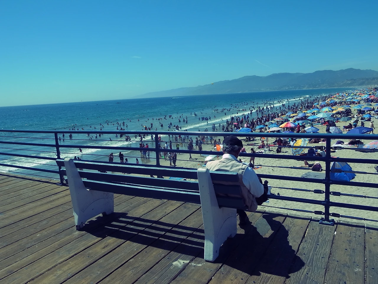 내 상상 속 미국의 해변은 이랬다. 일단 금발의 비키니 미녀들이 즐비하고 인구 밀도가 현저하게 낮아 풍경 자체가 여유로울 것 같았다. 총천연색 칵테일 한 잔을 여유롭게 마시며 뜨거운 햇살을 즐기는 이들의 해변일 것만 같았다. 하지만 현실 속 산타모니카는 아~~~주 끝없이 길게 펼쳐진 해운대 같았다. 해변엔 작은 놀이공원과 음식점, 노점상이 즐비했다. 인구 밀도는 매우 높았다. 비키니를 입은 미녀는 못 봤다. (사람이 너무 많아서 가려져 있었을 것이라 추측한다.)