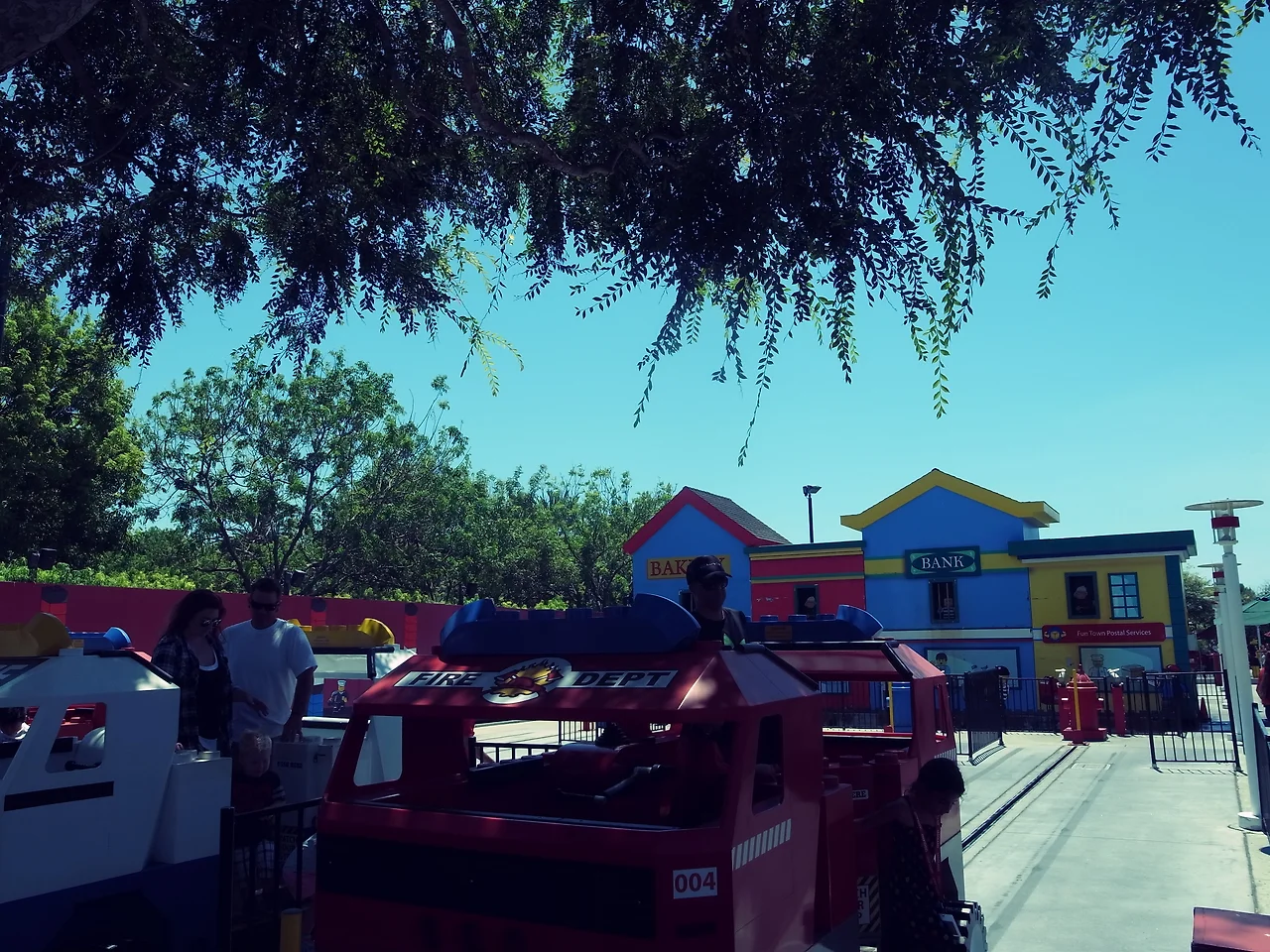 레고랜드는 정말 창의적인 놀이기구로 가득 차 있다. 무섭거나 안 무서운-으로 나뉘는 놀이공원이 아니다. 예를 들면 '레고 소방대'같은 것. 레고로 만들어진 차가 3,4대 늘어서 있다. 한 명이든 3,4명 가족이든 차에 탄다. 그리고 소방 알람이 울린다. 10m 앞 불이 난 건물을 향해 온 힘을 다해 펌프질을 해야 한다. (1명이 탄 차는 ......) 사정거리에 이르러 차에 설치된 소방호스를 들어 물을 뿌린다. 진짜 물이 건물에 닿으면, 그 팀이 승리한 것.