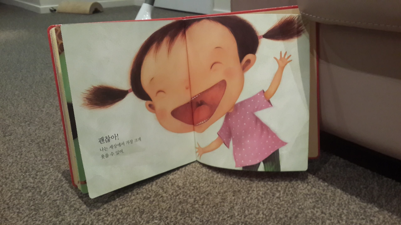 괜찮아! 나는 세상에서 가장 크게 웃을 수 있어.
