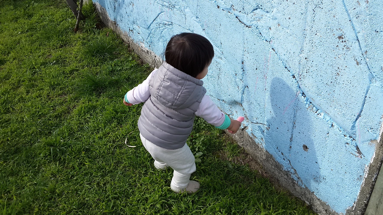 쫓아다니며 아이의 만행(!)을 만류하던 나는 이내 생각을 달리 먹었다. 스케치북이 좁고 재미없다면 그래, 니가 원하는 데다 마음껏 그려라. (그런데 벽이랑 소파는 말구 ......) 그렇게 아이와 나는 밖으로 나갔다. 내가 칠할 요량이던 고상한 컬러링북도 놓고 나갔다. 고사리 손으로 크레파스를 꼭 쥔 아이를 멍하니 바라보는 여유만으로 충분히 좋았다.